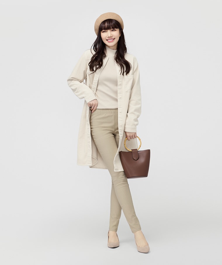彈力顯瘦緊身褲-女(灰卡其-S)