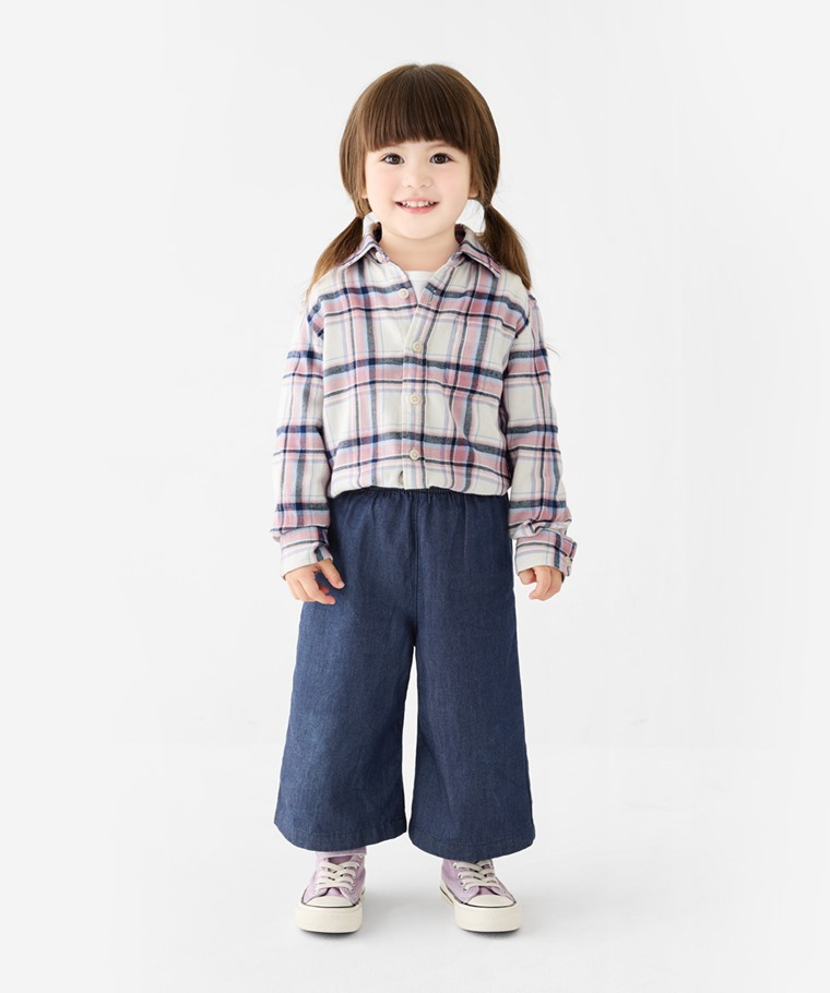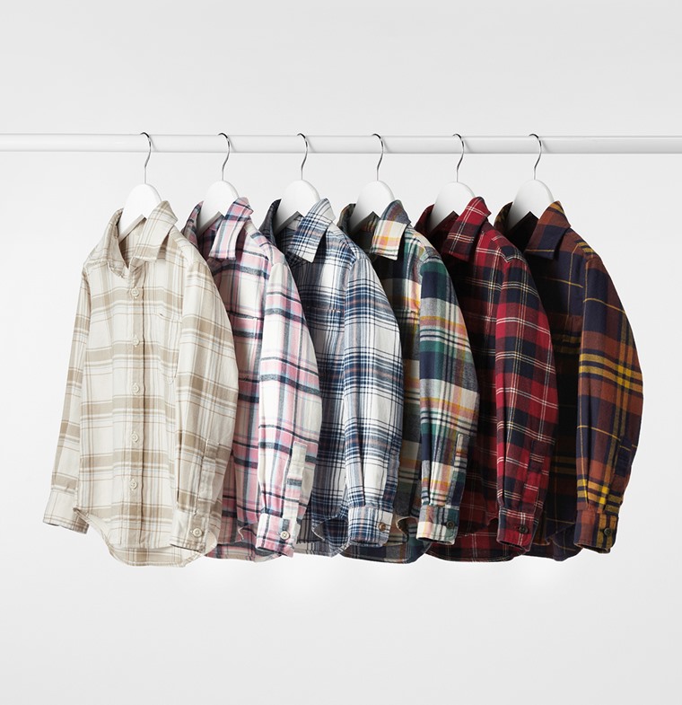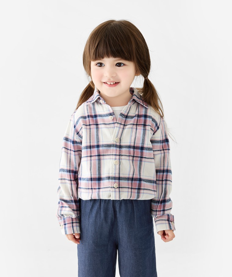 法蘭絨格紋襯衫-童(綠粉桔格-100)