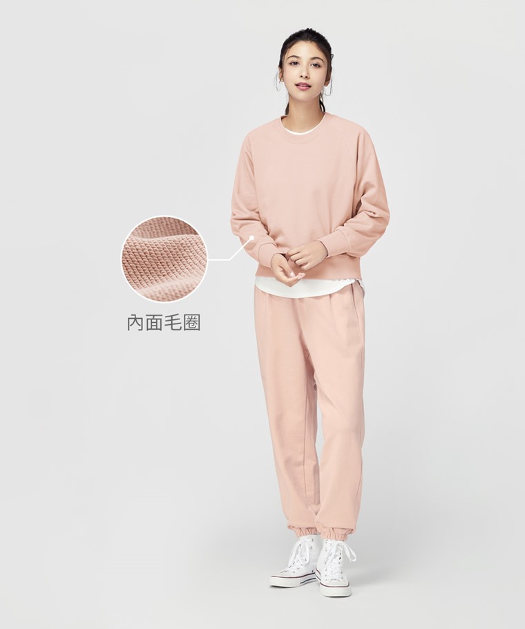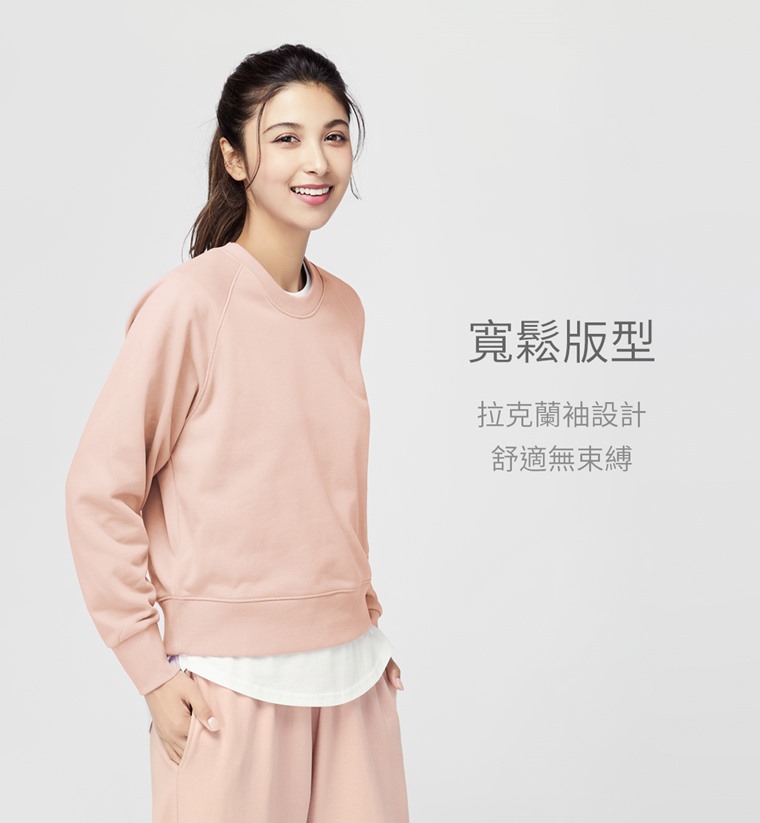 毛圈寬版休閒圓領衫-女(淺粉-S)