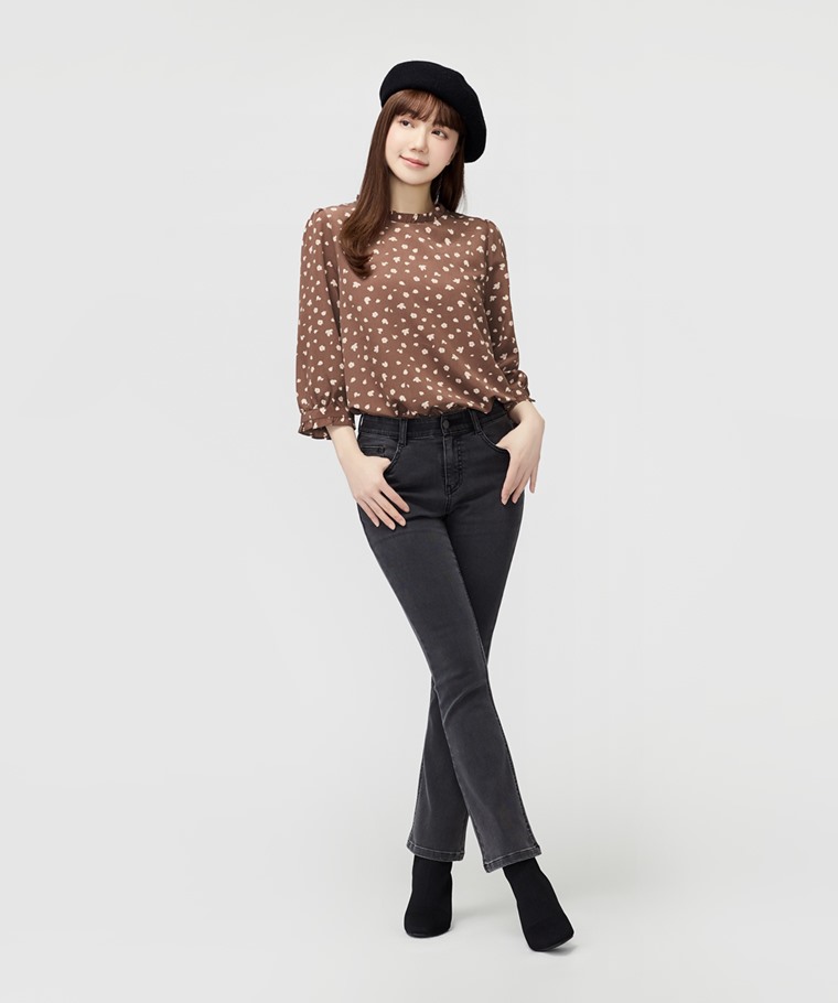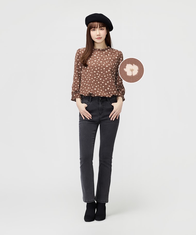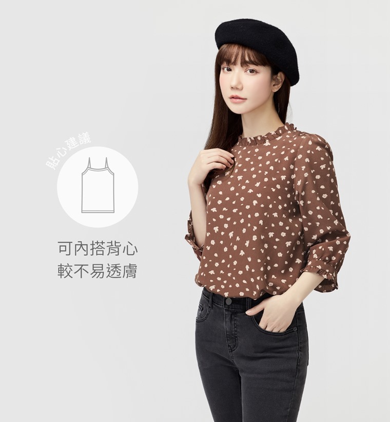 雪紡印花七分袖上衣-02-女(咖啡-S)