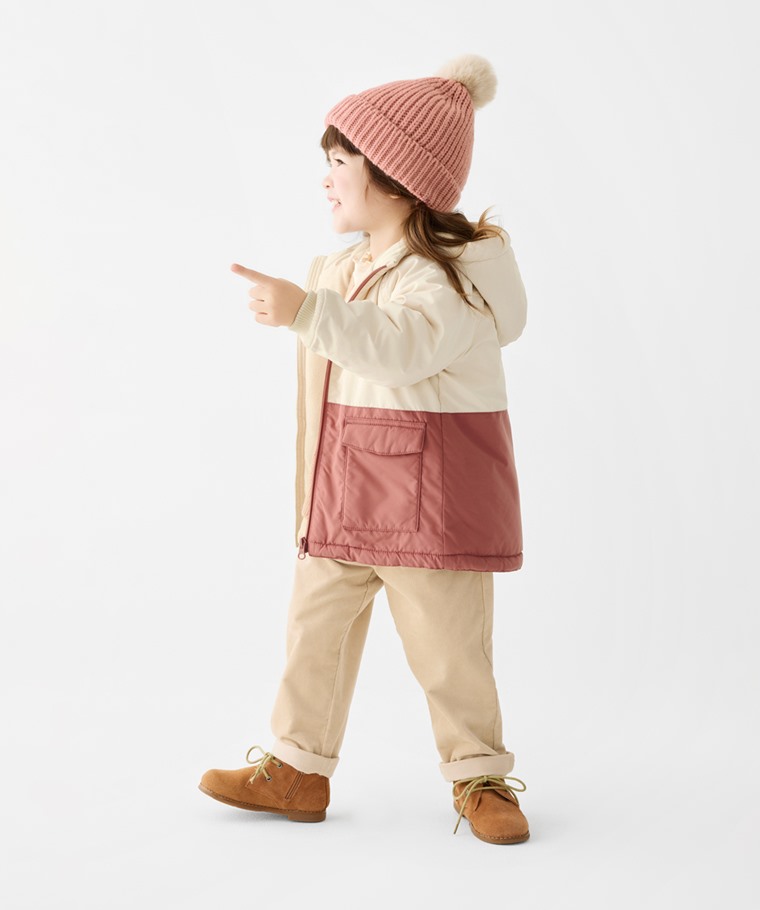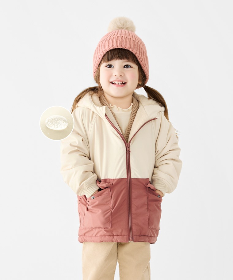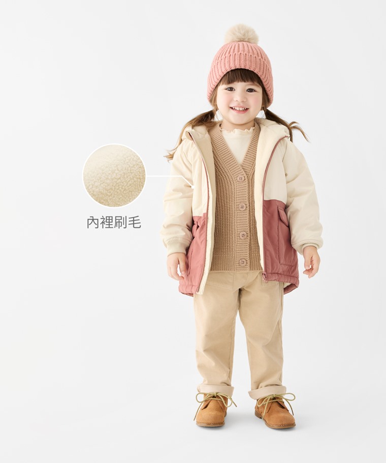 鋪棉拼接連帽外套-童(淺卡其-110)
