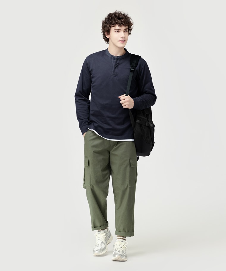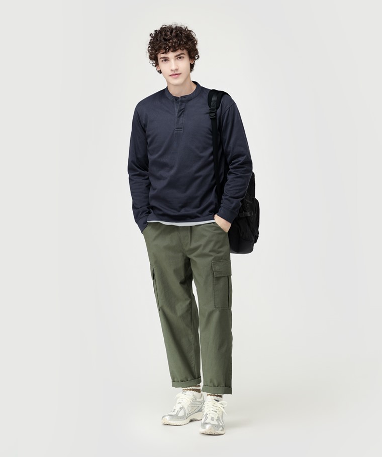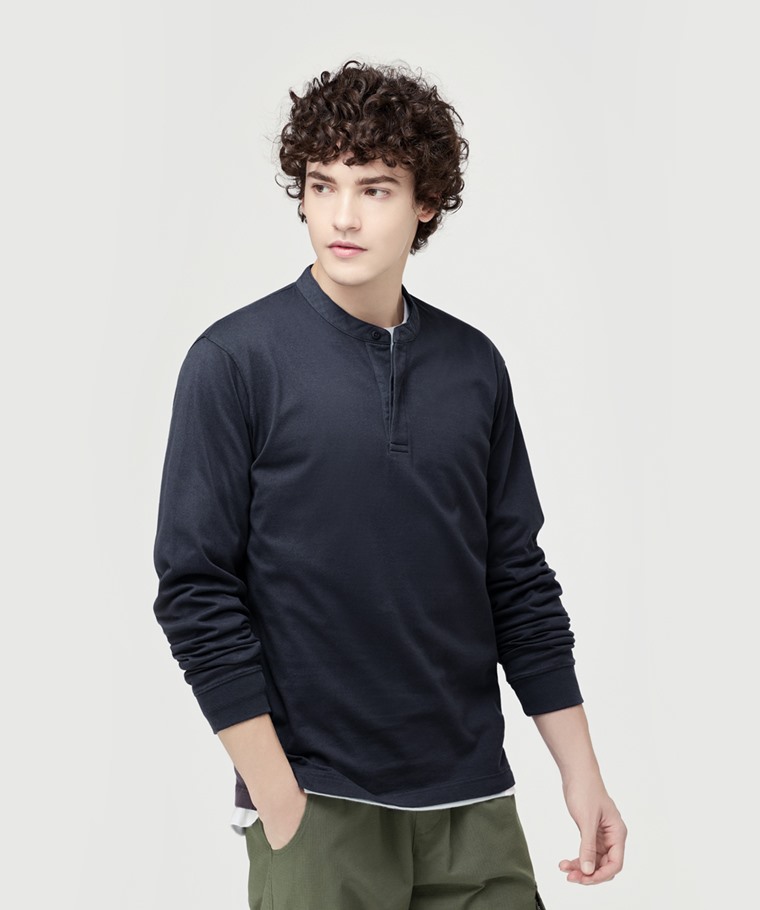 純棉粗紡立領半開襟上衣-男(藏青-S)