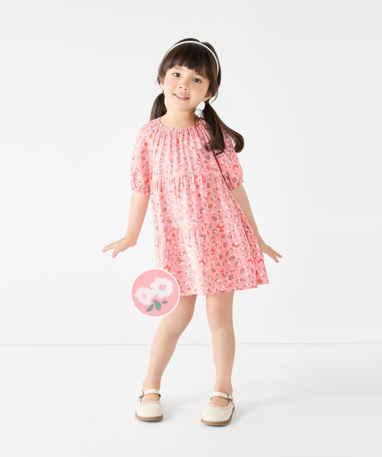 嫘縈印花蛋糕裙洋裝-童(粉色-100)