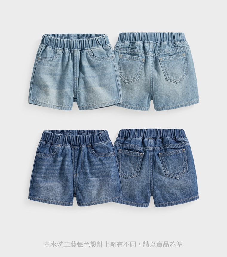 純棉牛仔鬆緊短褲-Baby(藍色-80)