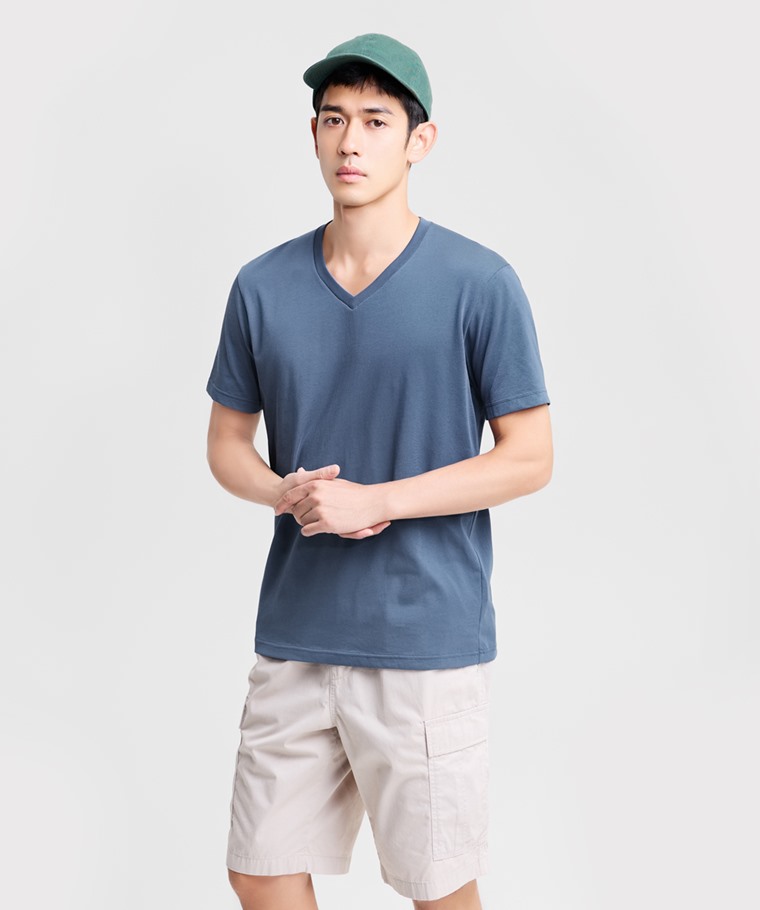 快乾棉V領T恤-男(藏青-XL)