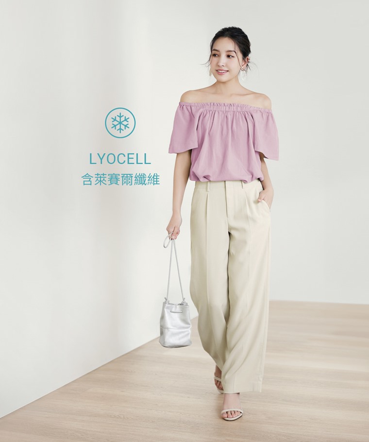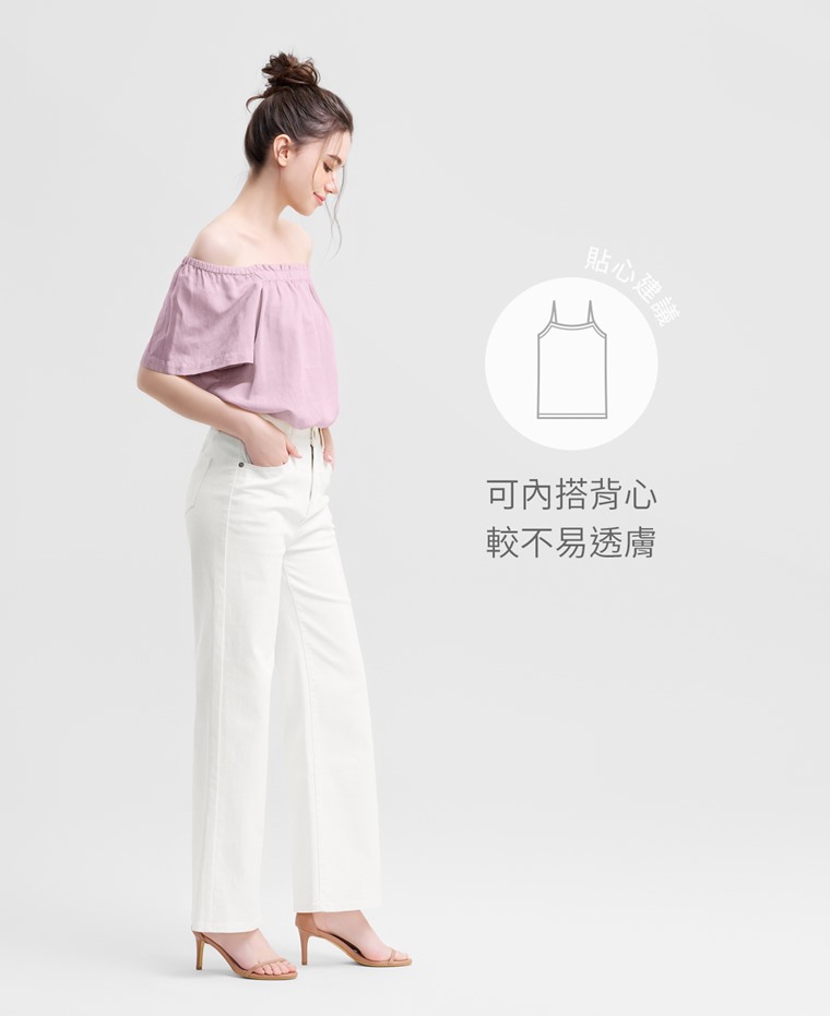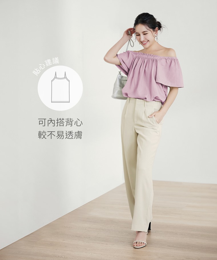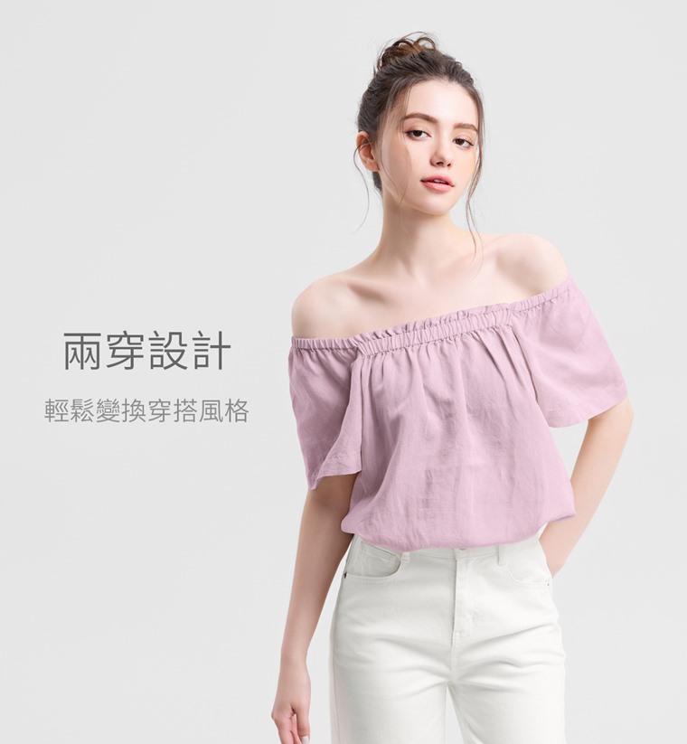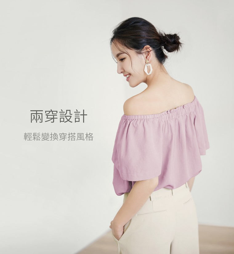 亞麻混紡方領寬版上衣-女(粉紫-L)