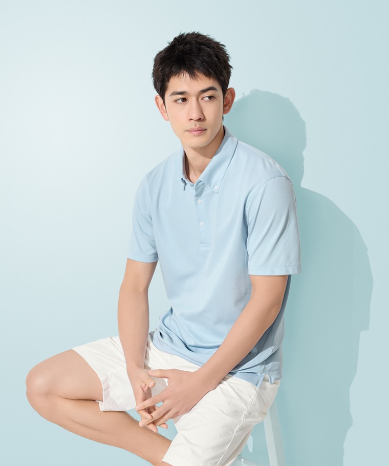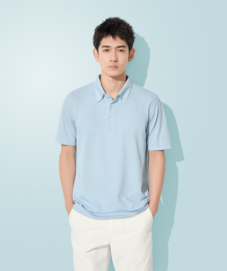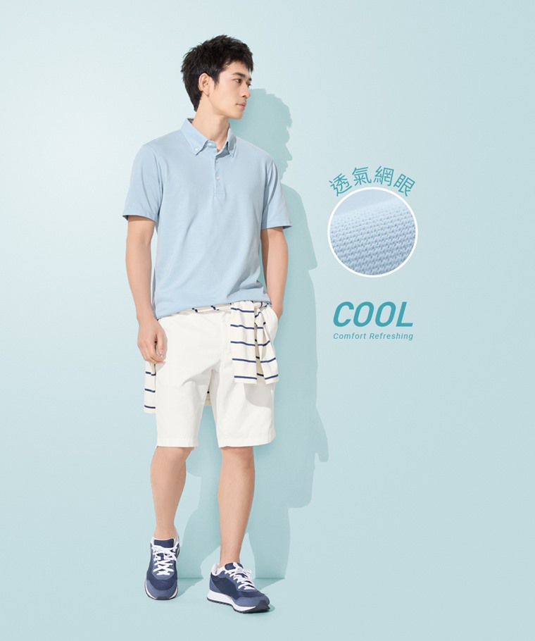 涼感網眼鈕釦領polo衫-男(淺灰綠-S)