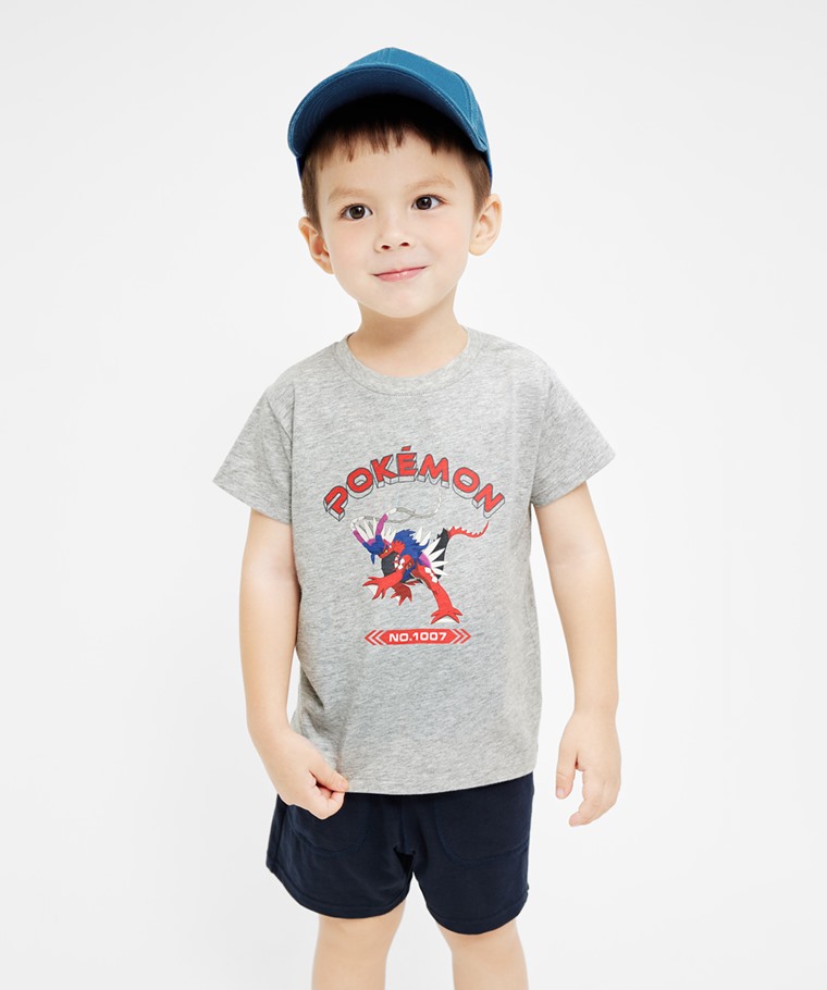 寶可夢印花T恤-04-童(淺麻灰-100)