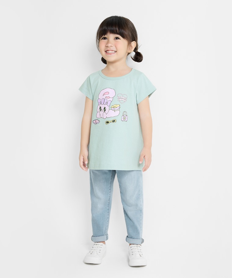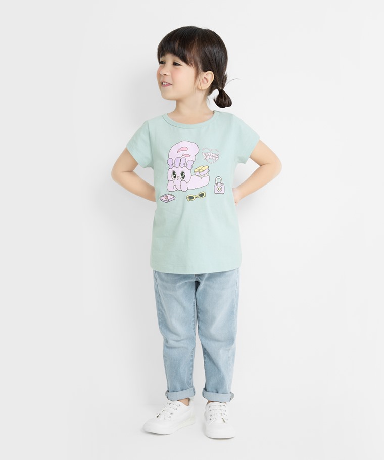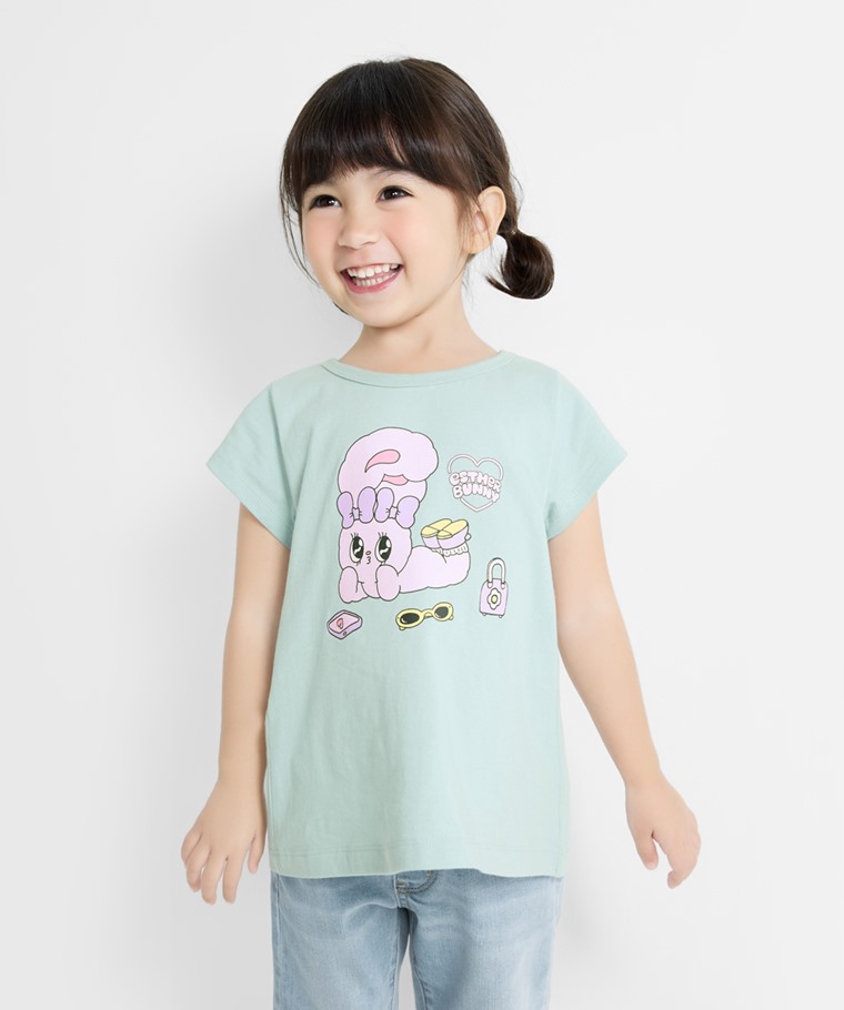 艾絲樂小兔長版印花T恤-02-童(淺水綠-100)