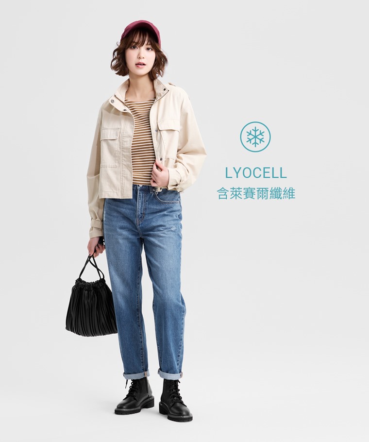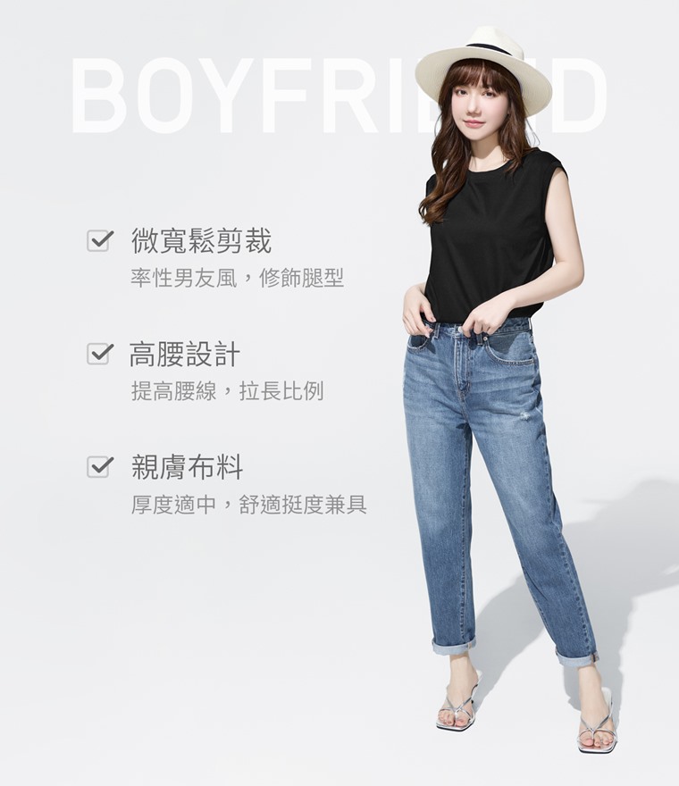 寬版高腰男友風九分牛仔褲-女(淺藍-23)