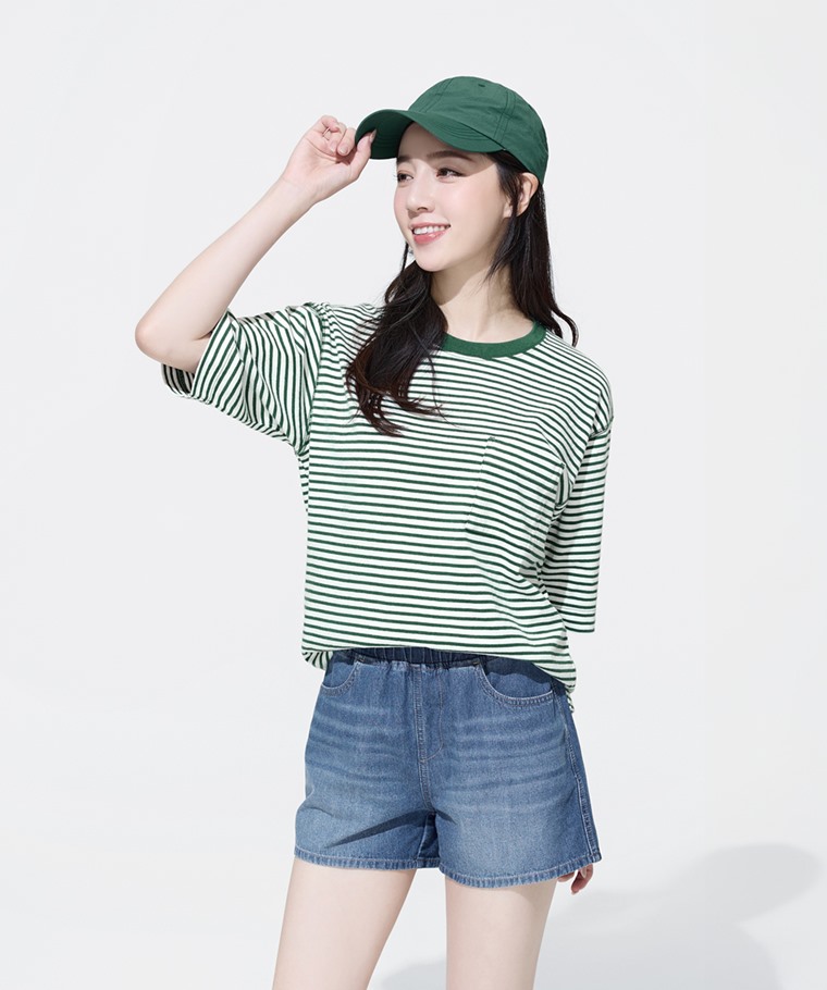 純棉牛仔輕便短褲-女(深藍-L)