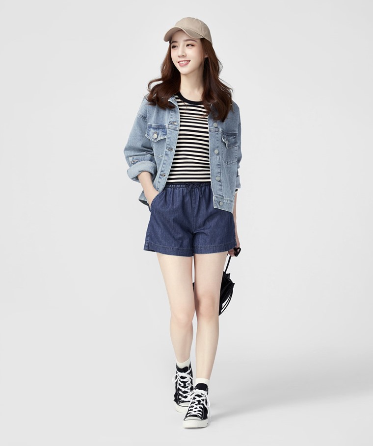 軟牛仔短褲-女(藍色-S)