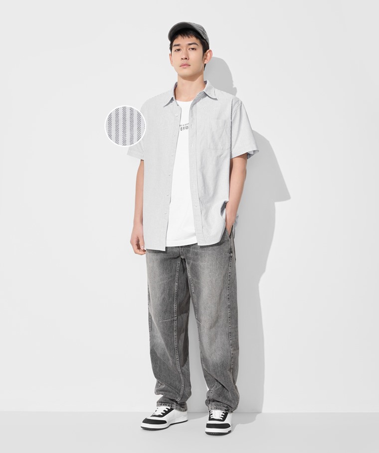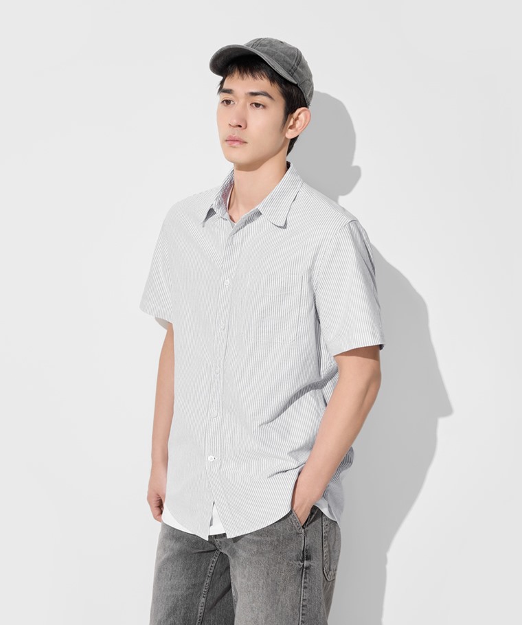 牛津條紋短袖襯衫-男(藍白條-XXL)