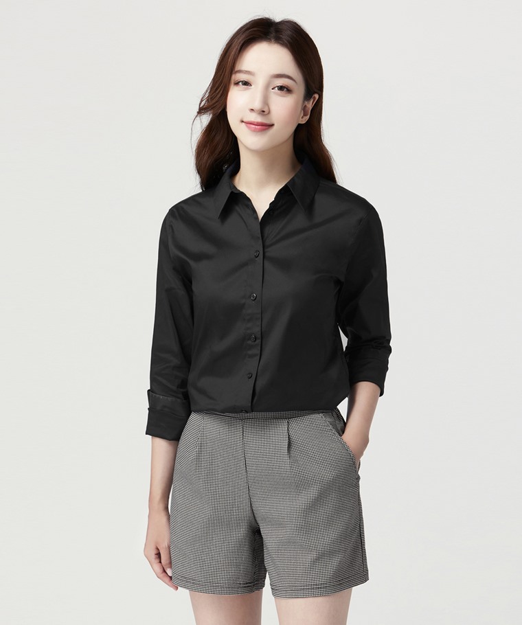 商務彈性長袖襯衫-女(淺藍-S)