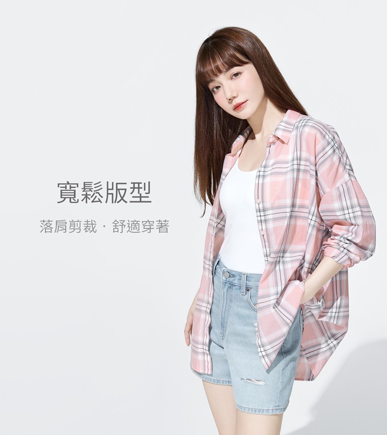 輕薄格紋寬版襯衫-女(灰棕米格-M)