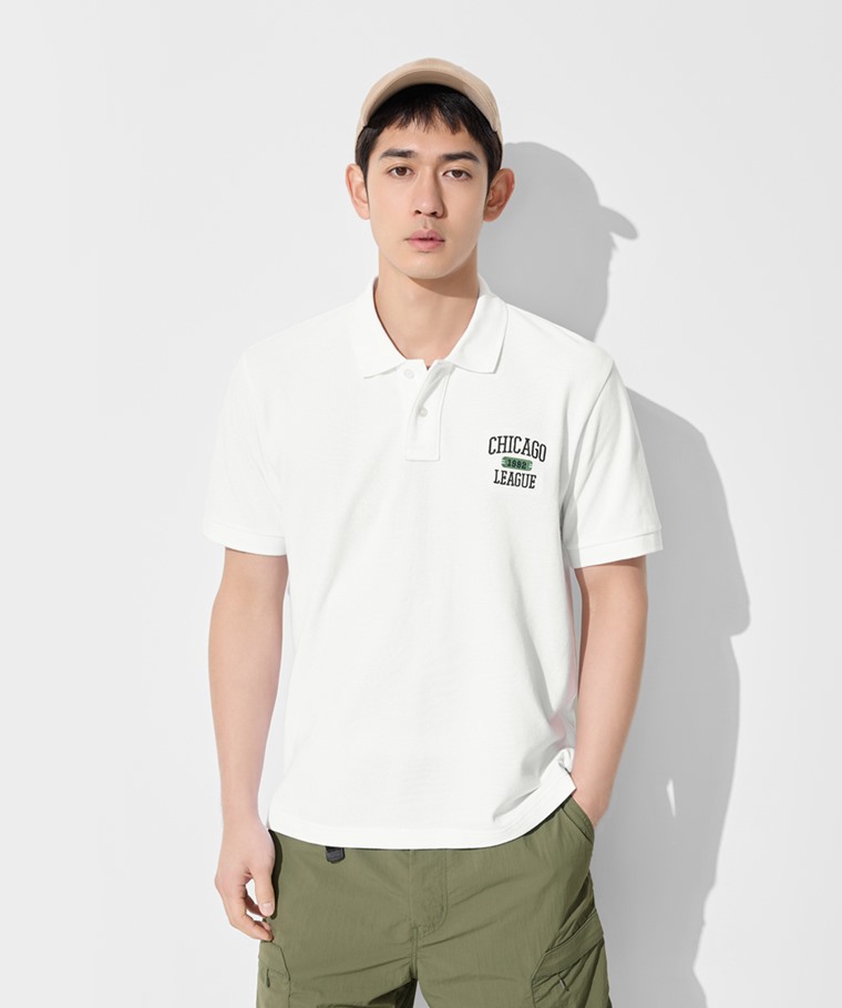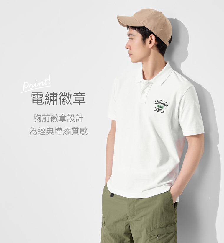 純棉網眼徽章polo衫-男(深藍-S)