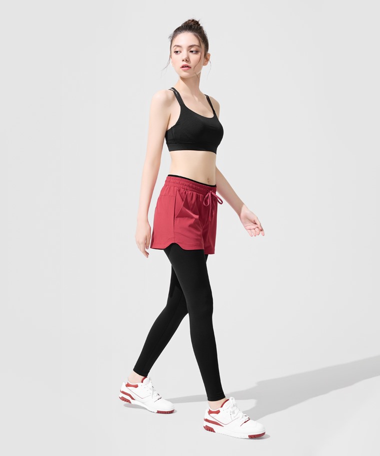 運動假兩件長褲-女(玫紅-L)