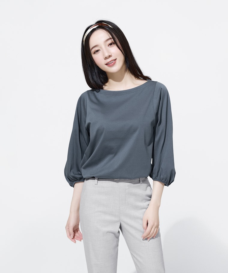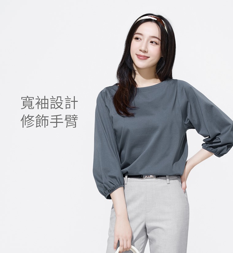 絲光棉寬鬆船領七分袖上衣-女(白色-M)