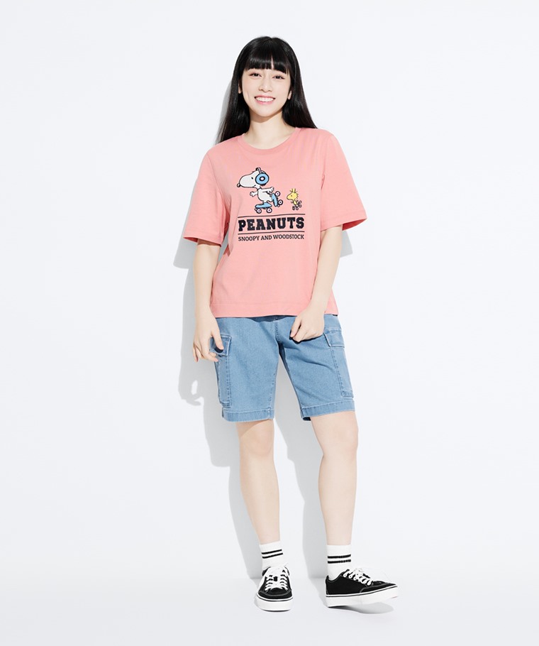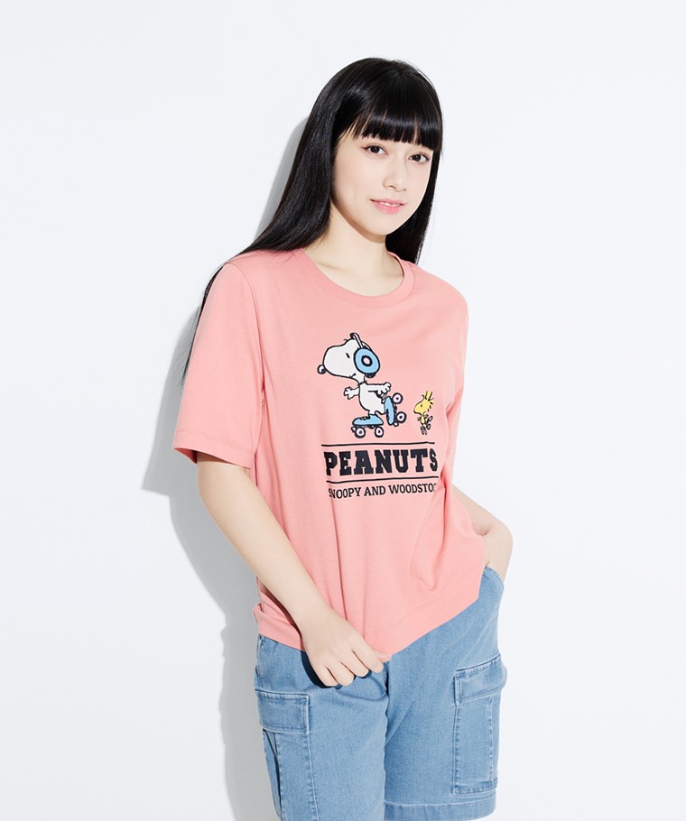 史努比系列寬版印花T恤-09-女(灰粉-S)