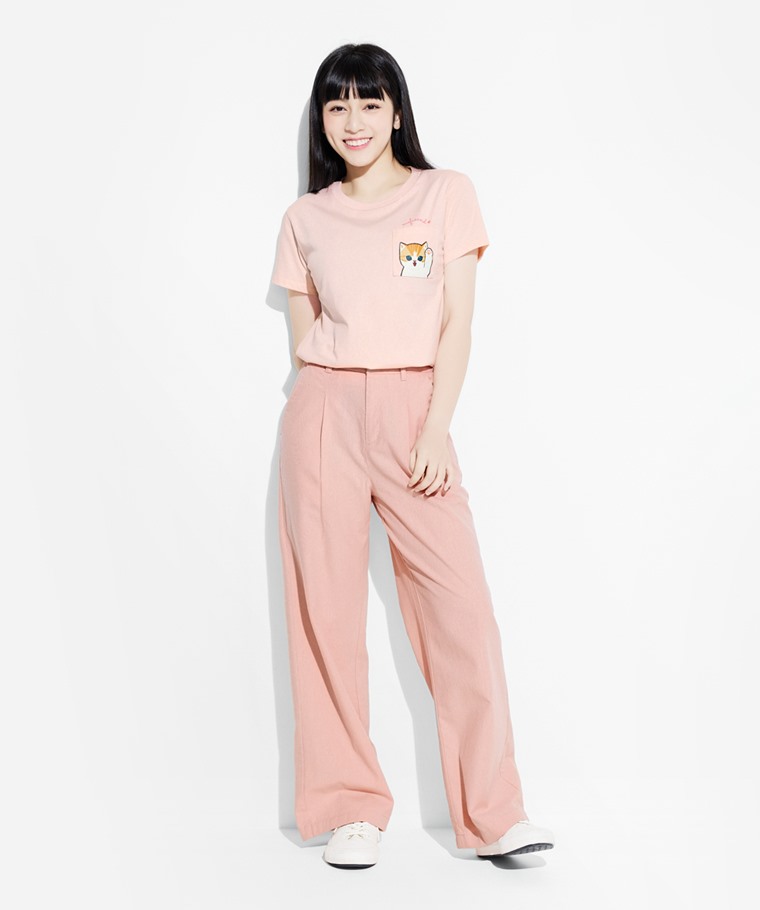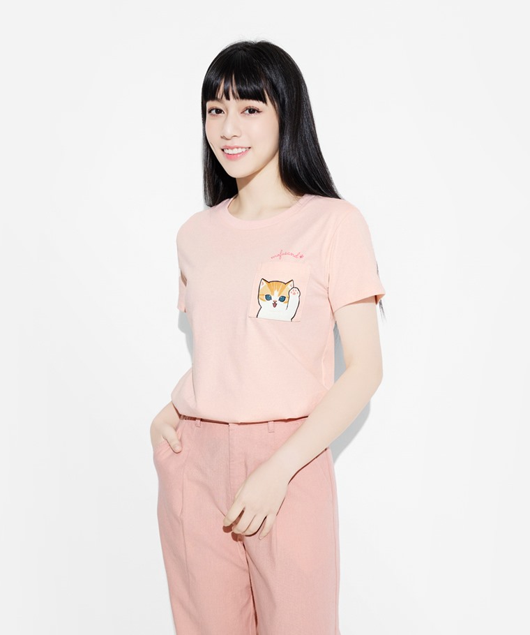 貓福珊迪口袋印花T恤-07-女(淡粉-M)