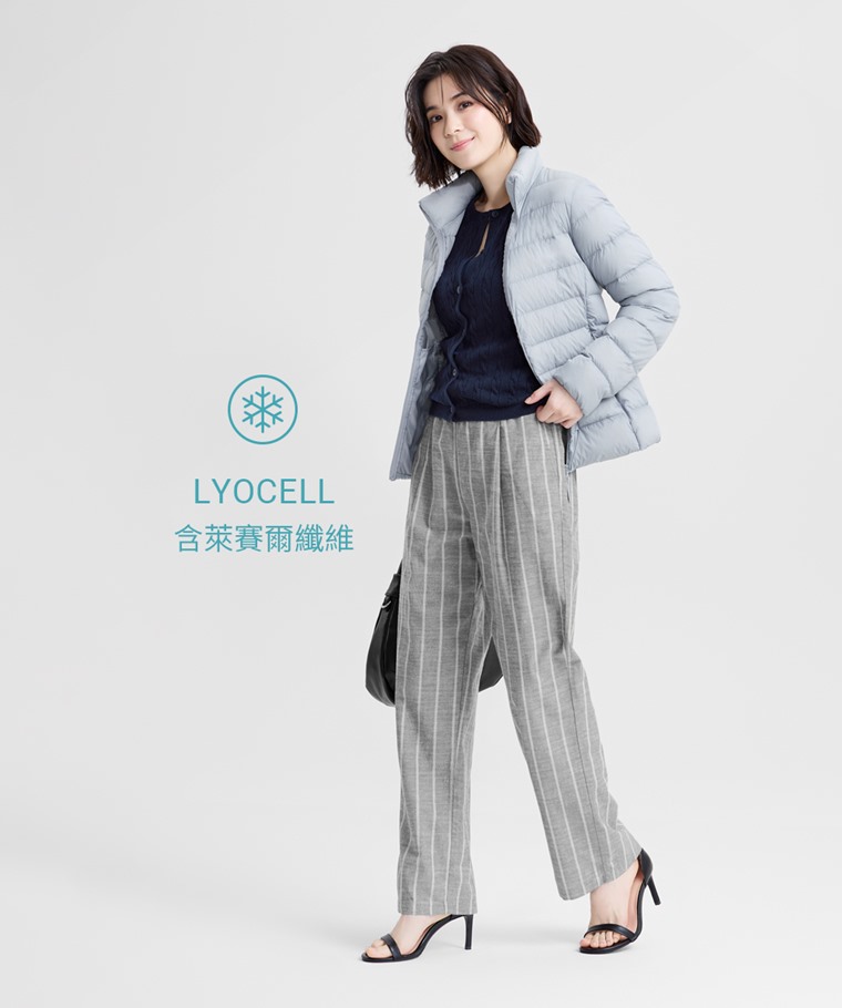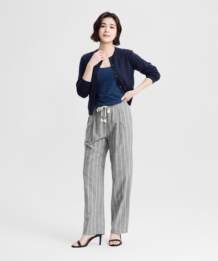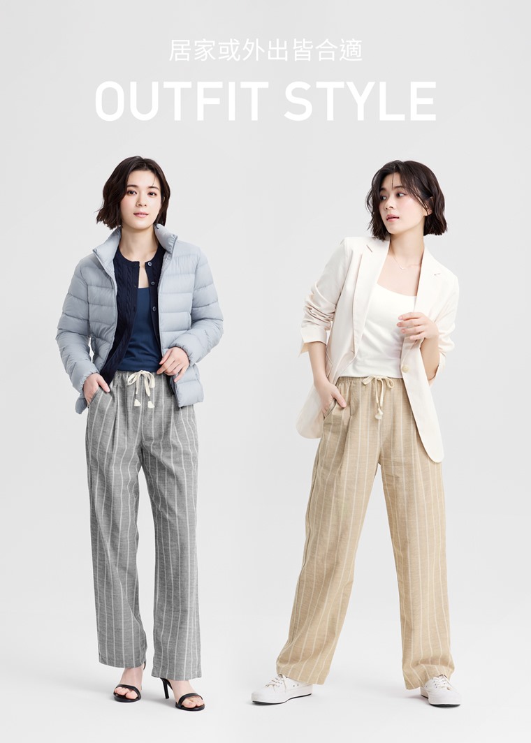 亞麻混紡條紋輕便長褲-女(卡其條-S)