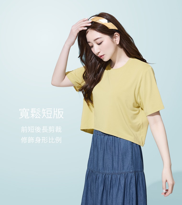 涼感寬短版上衣-女(淺灰藍-XL)