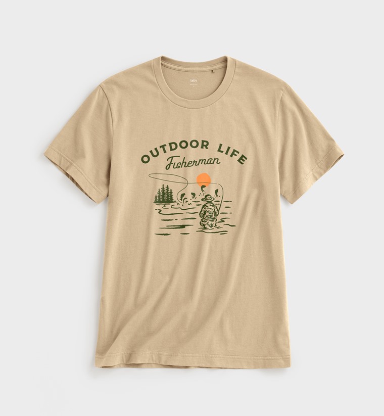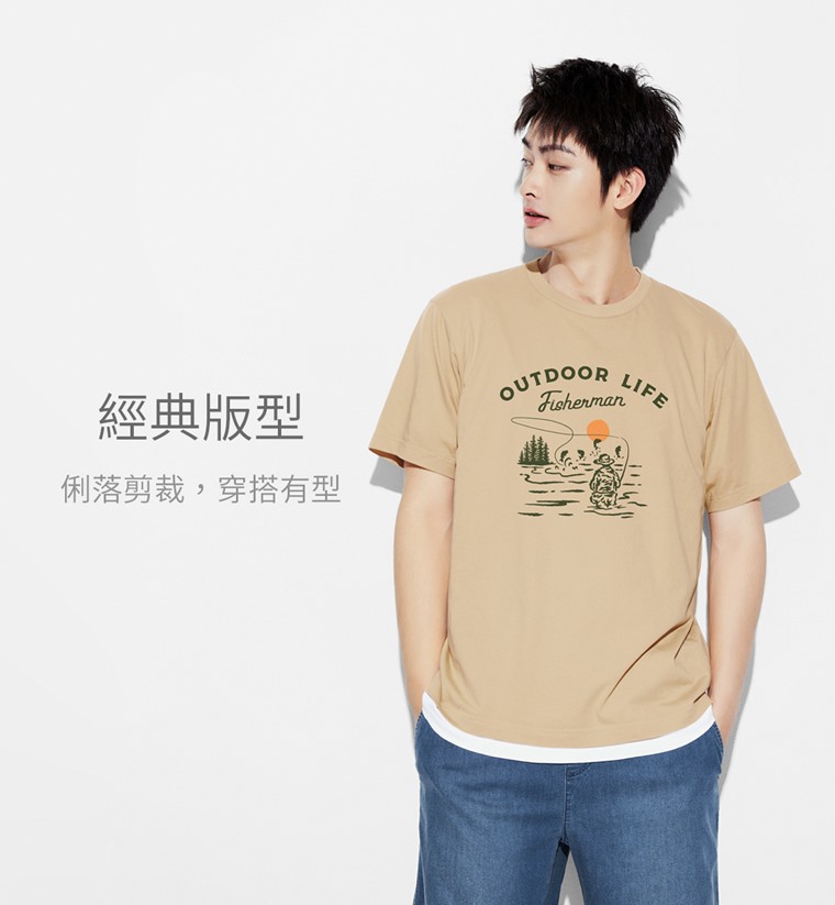 戶外休閒印花T恤-03-男(淺卡其-S)
