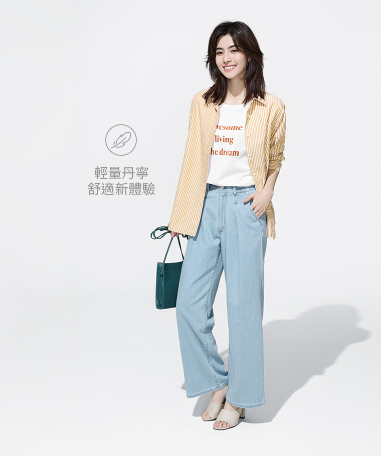 輕量打褶牛仔寬褲-女(淺藍-S)