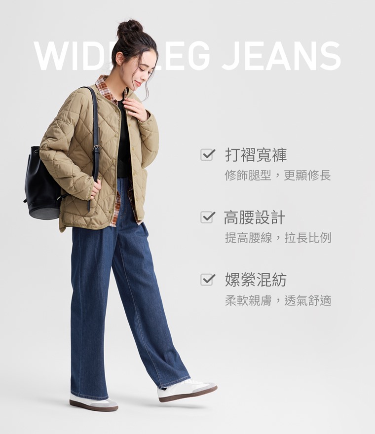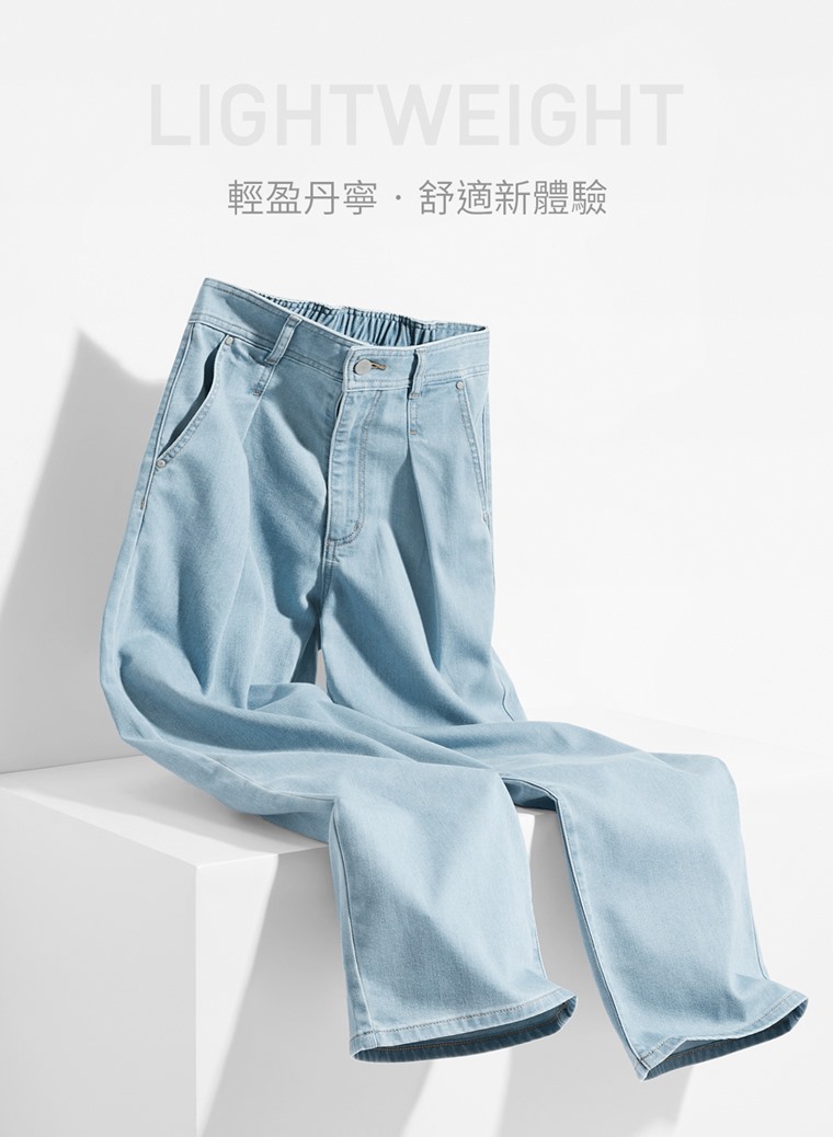 輕量打褶牛仔寬褲-女(深藍-M)