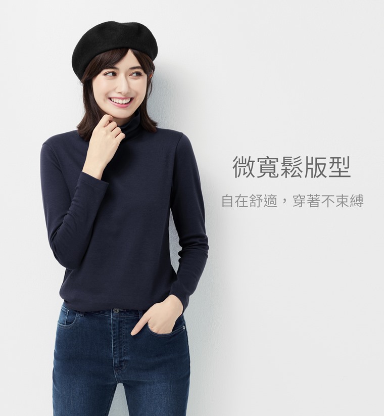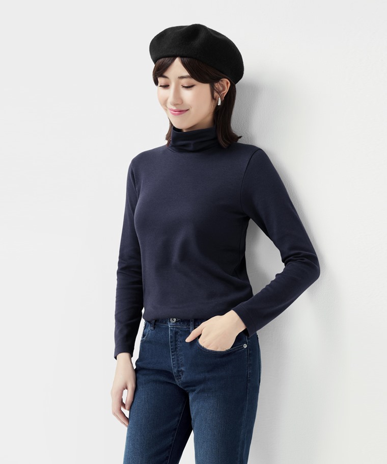 彈性柔滑棉高領T恤-女(黑色-L)