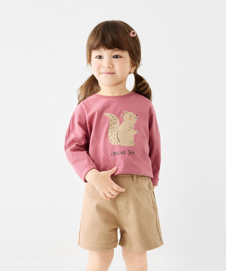 竹節棉寬鬆印花T恤-01-童(米杏-130)