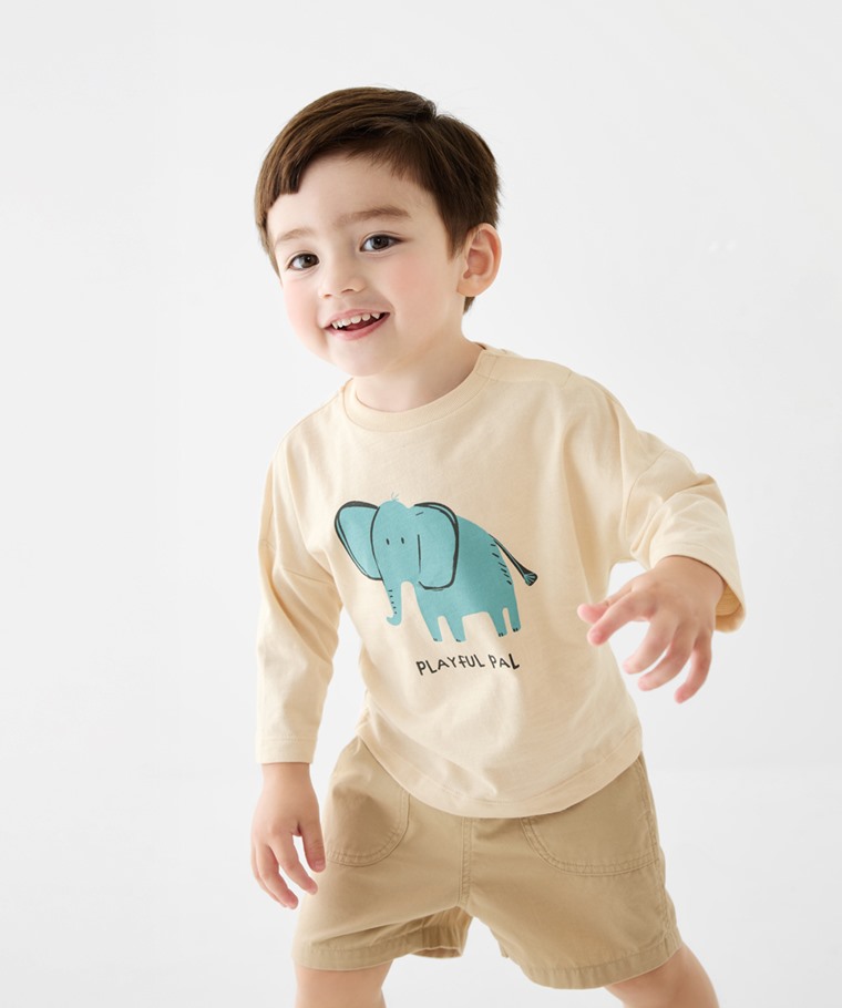 竹節棉寬鬆印花T恤-01-Baby(米杏-90)