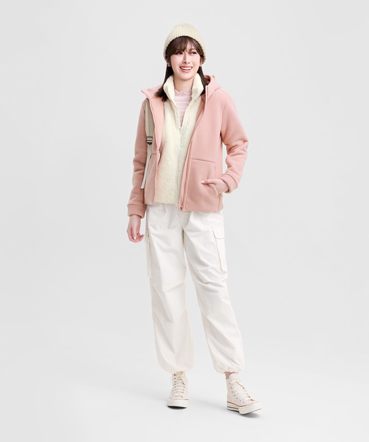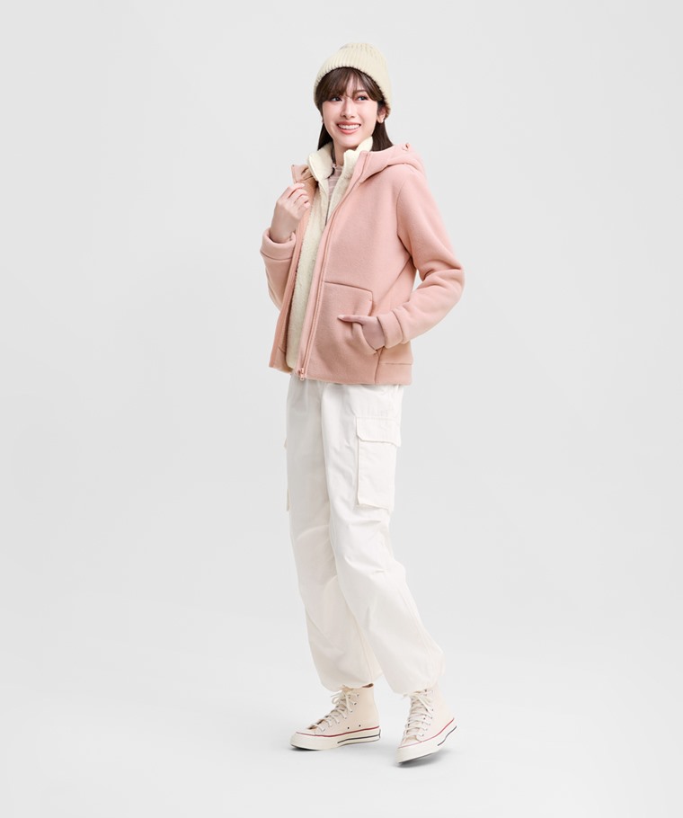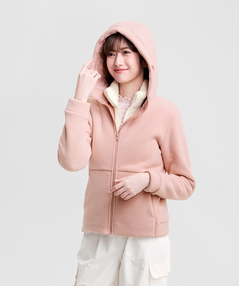 Fleece厚版連帽外套-女(霧藍-S)