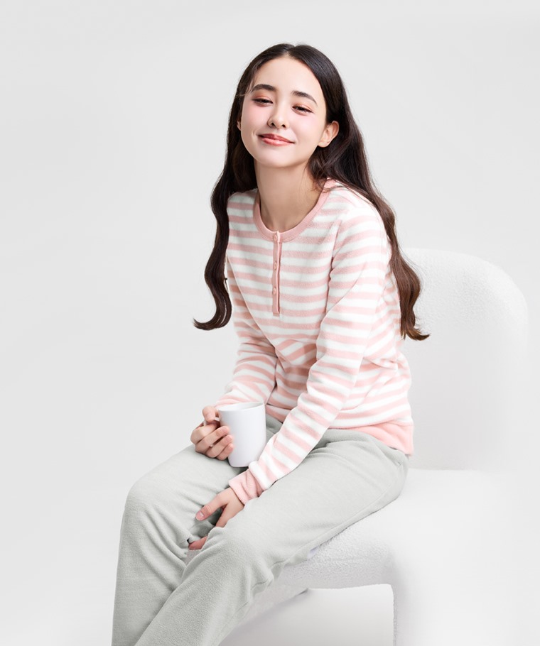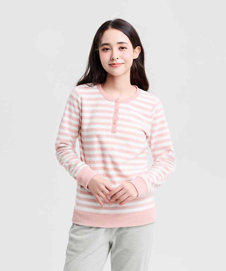 Fleece條紋家居套裝-女(藏青條-L)