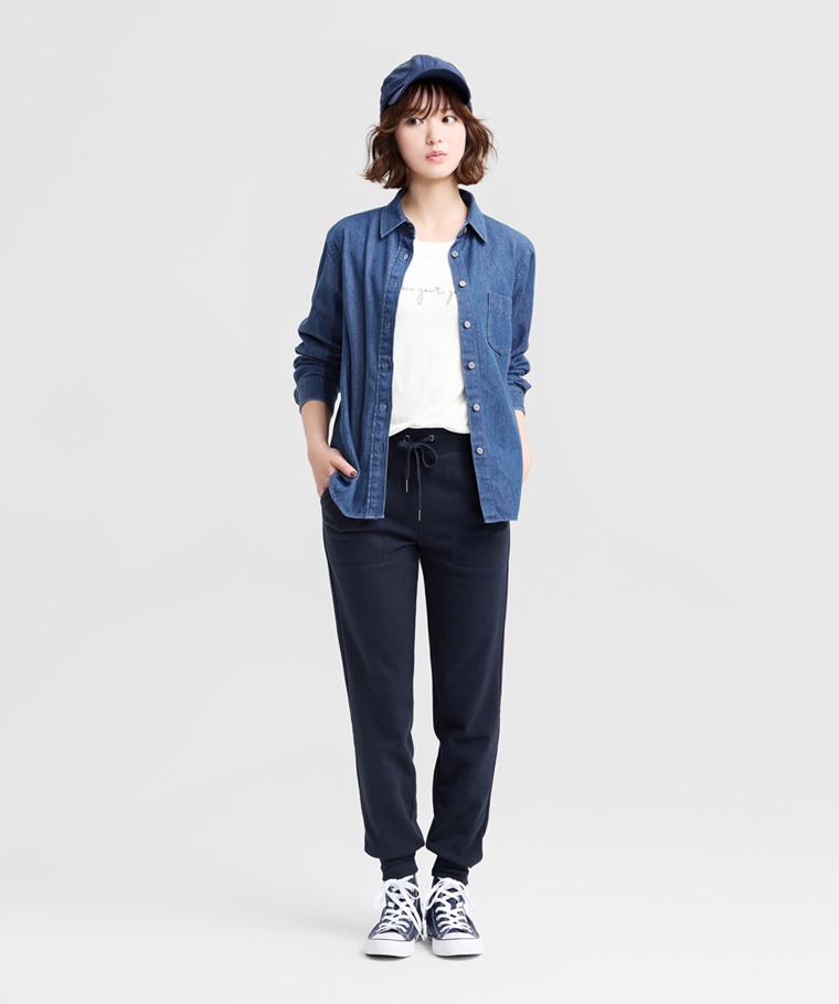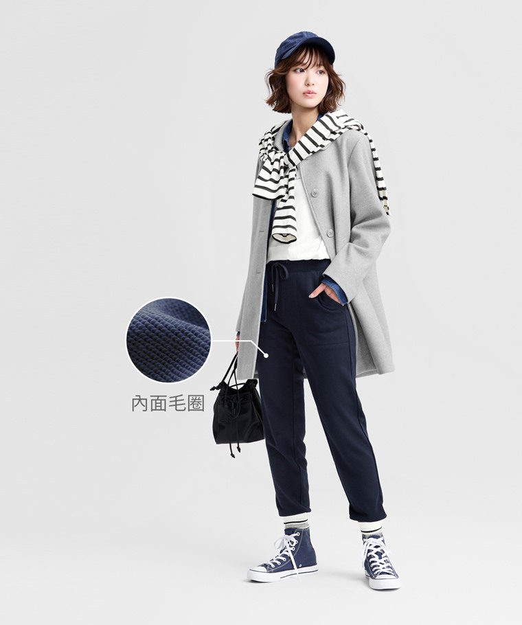 毛圈束口長褲-女(黑色-L)