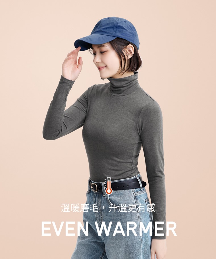 heatup輕磨毛高領長袖上衣-女(米白-XL)