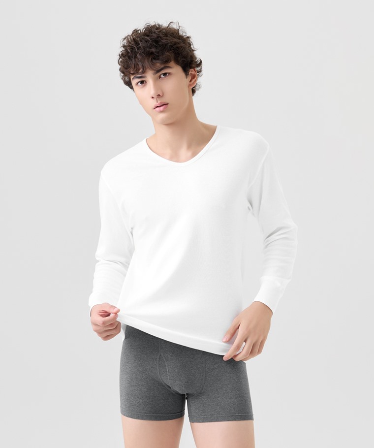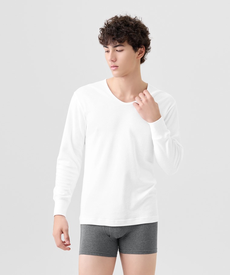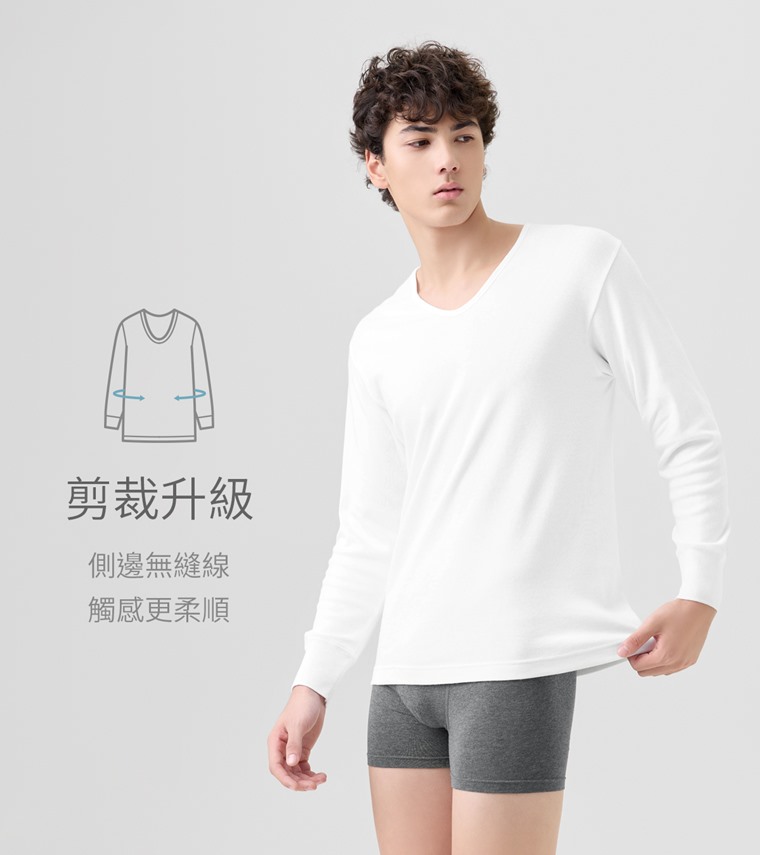 無側縫U領九分袖內衣-男(黑色-S)