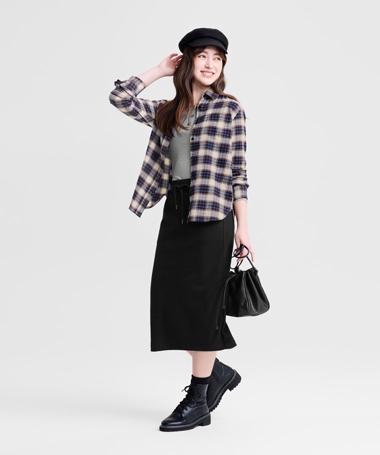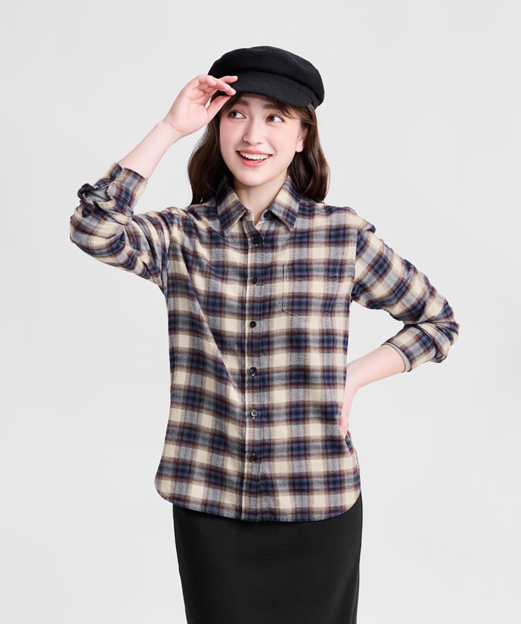 法蘭絨格紋襯衫-女(粉紅白格-L)