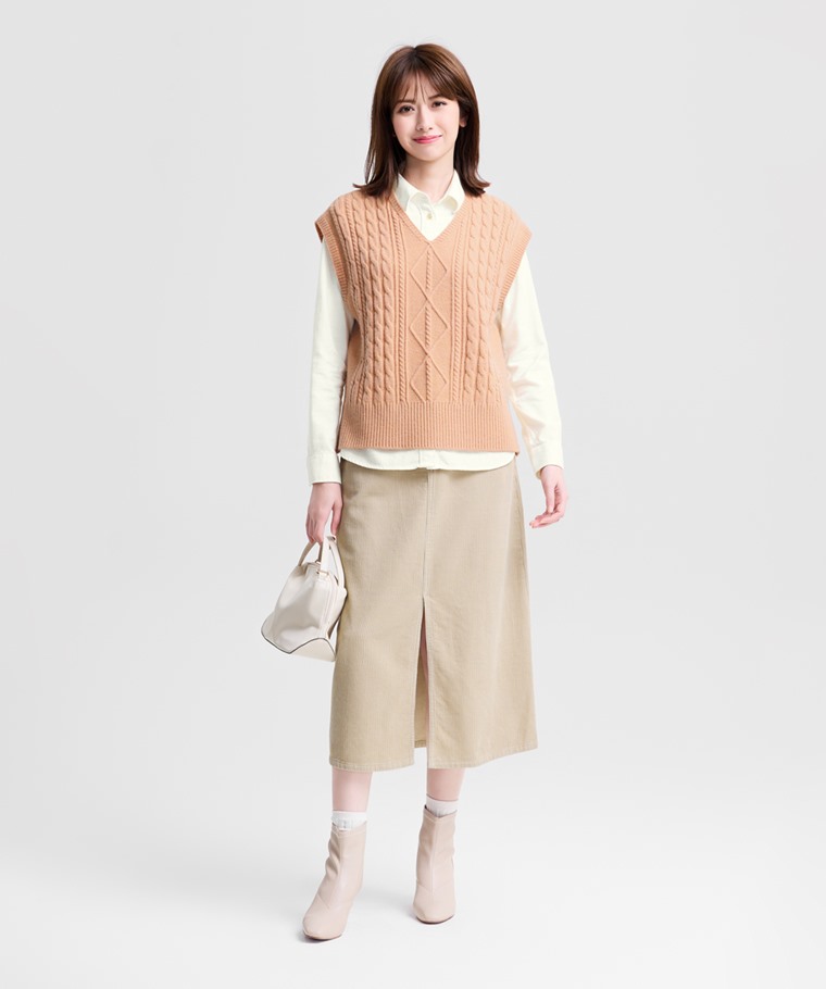 燈芯絨長裙-女(米色-S)