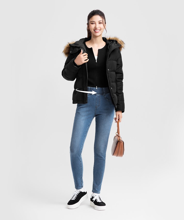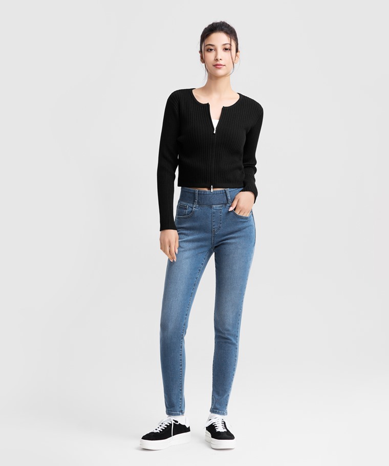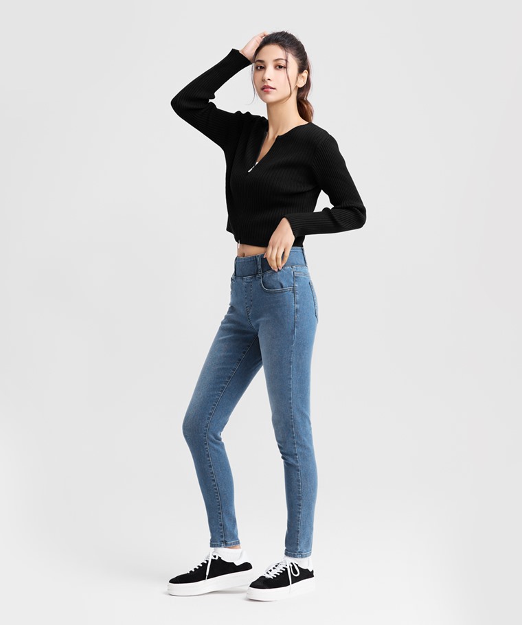 高腰收腹緊身牛仔褲-女(深藍-S)