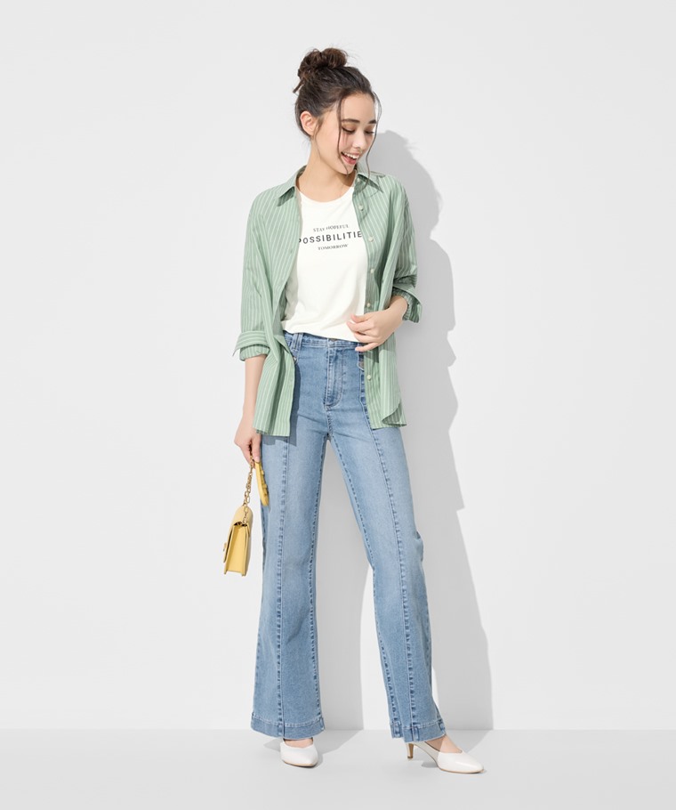 立體剪裁高腰靴型牛仔褲-女(藍色-26)