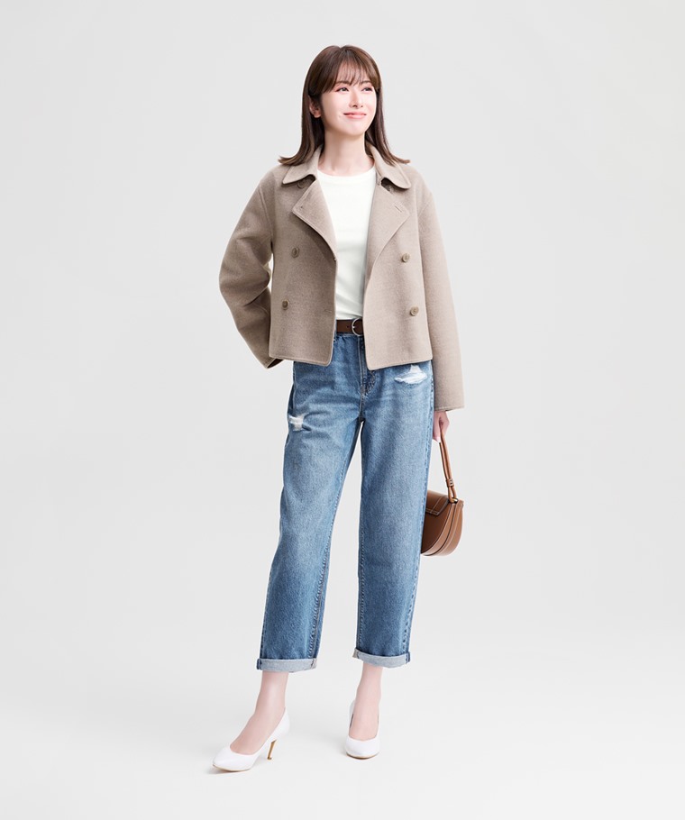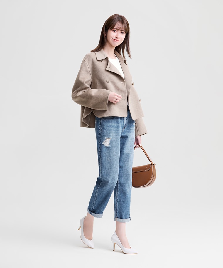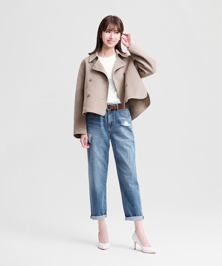 刷破男友風九分牛仔褲-女(淺藍-23)