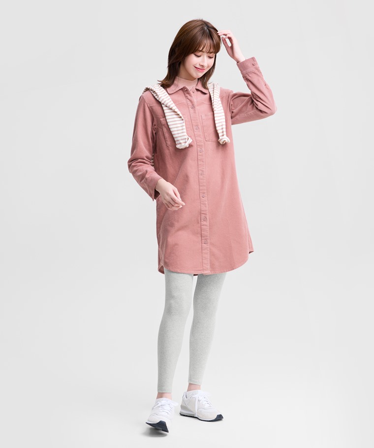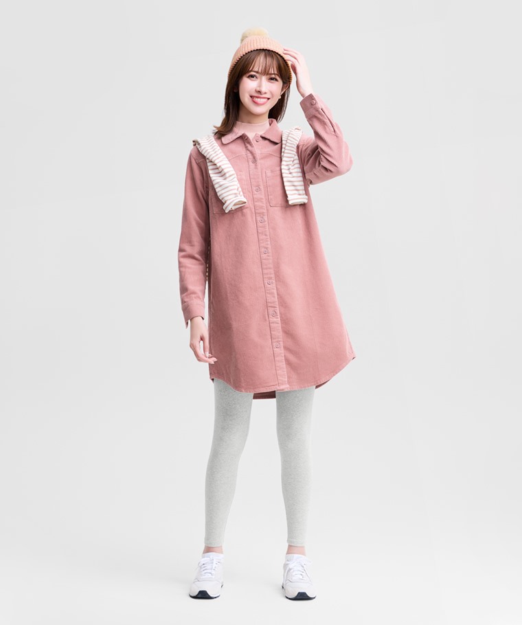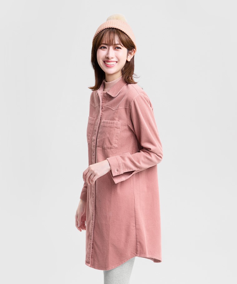 燈芯絨襯衫式洋裝-女(粉色-S)