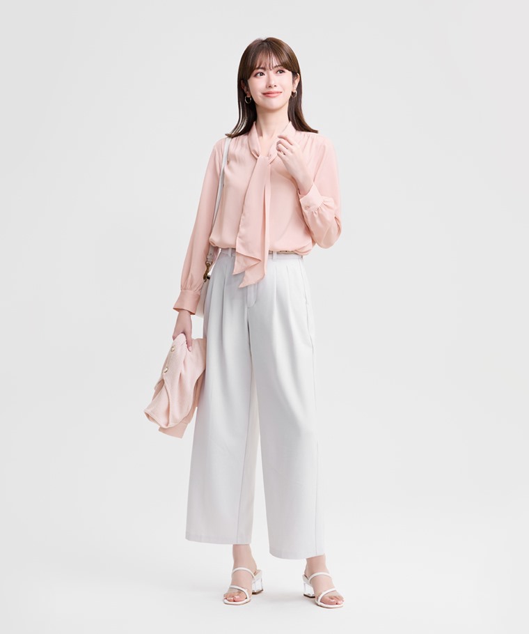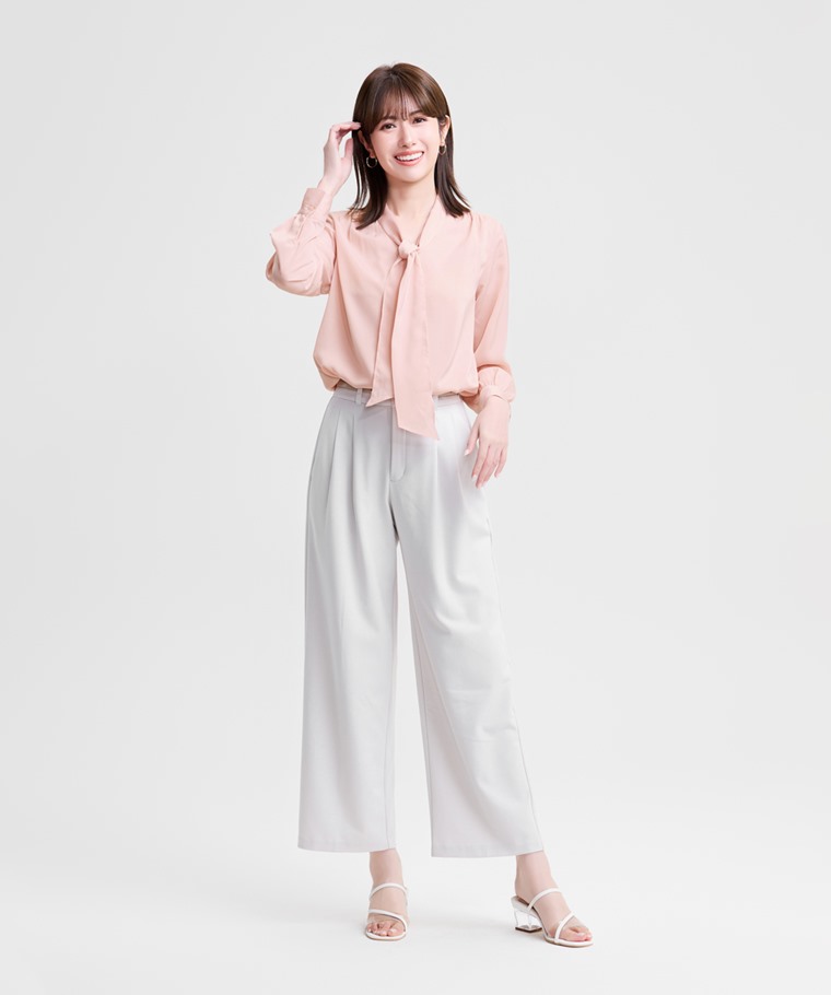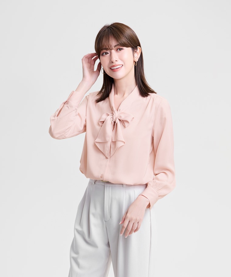 緞面領結長袖襯衫-女(粉色-XL)
