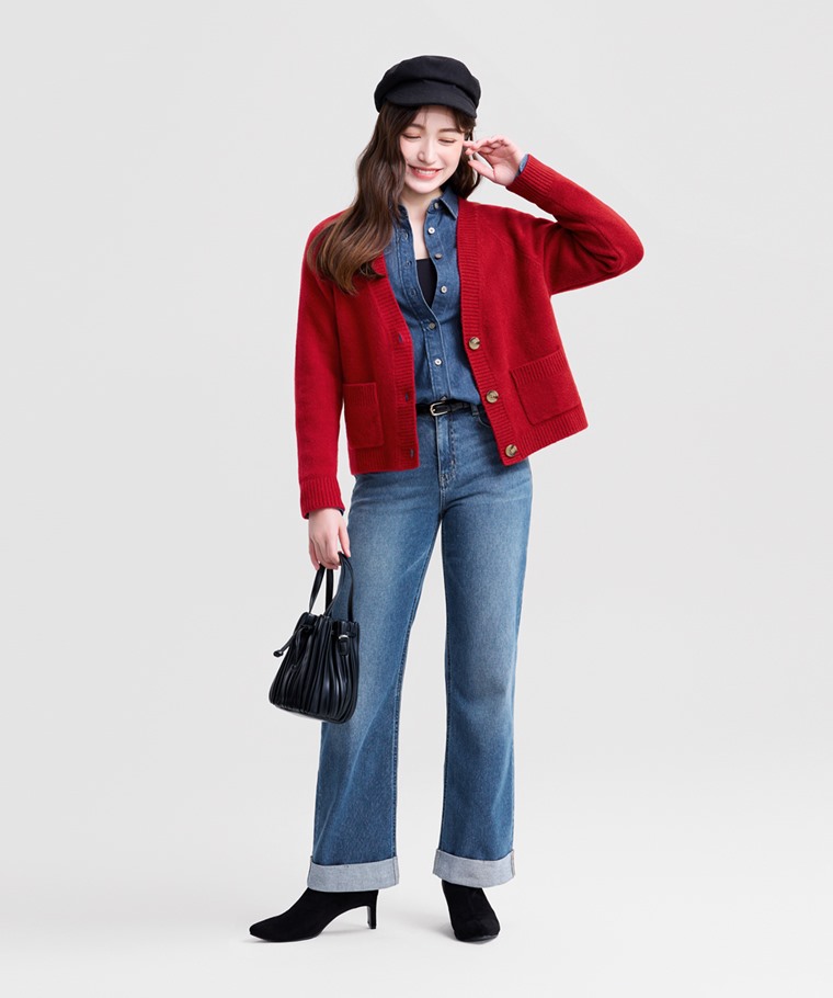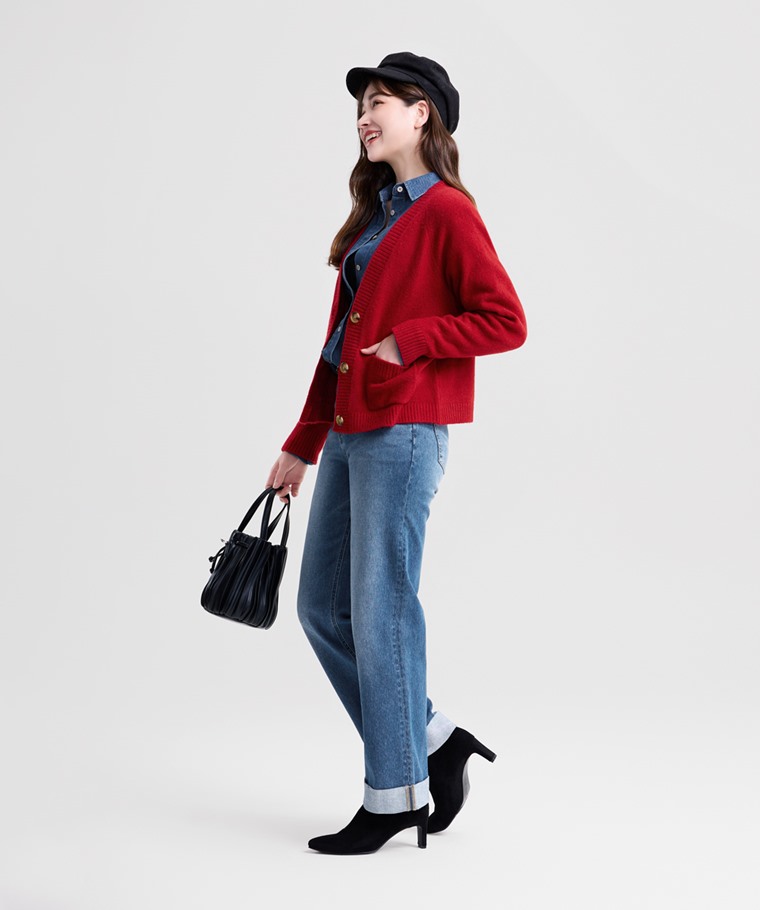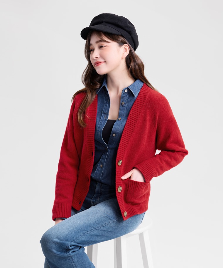 柔軟舒適短版針織外套-女(紅色-L)