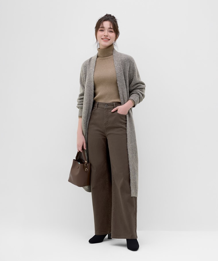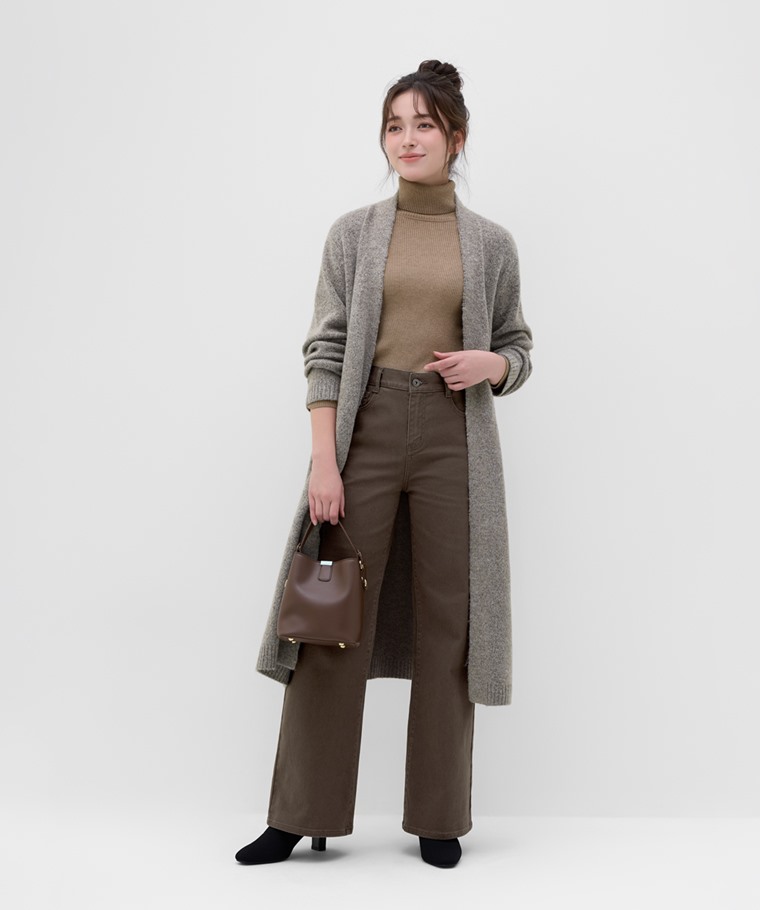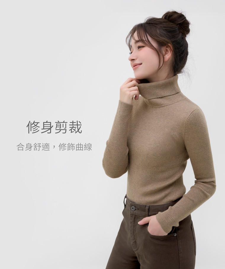 柔軟羅紋高領毛衣-女(深紅-XL)