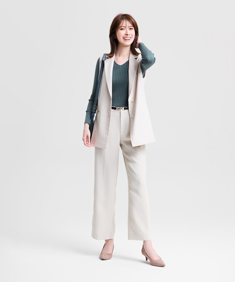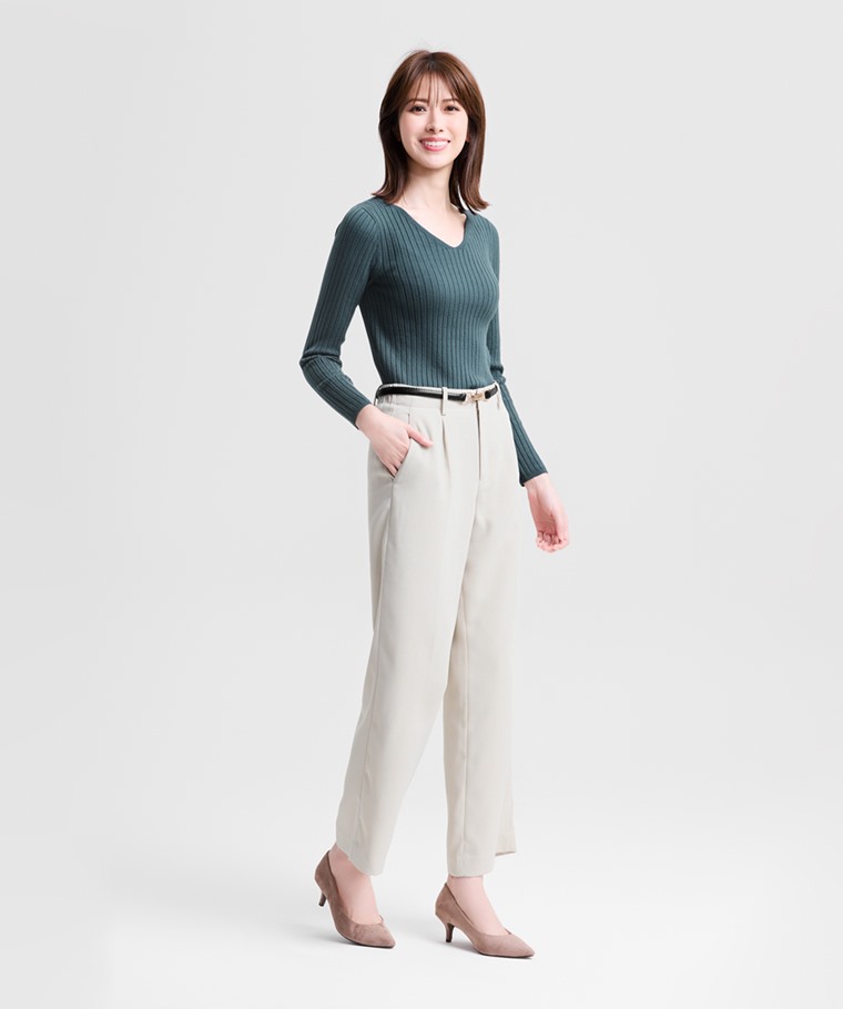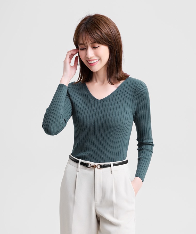 柔軟羅紋V領毛衣-女(淺黃-XL)