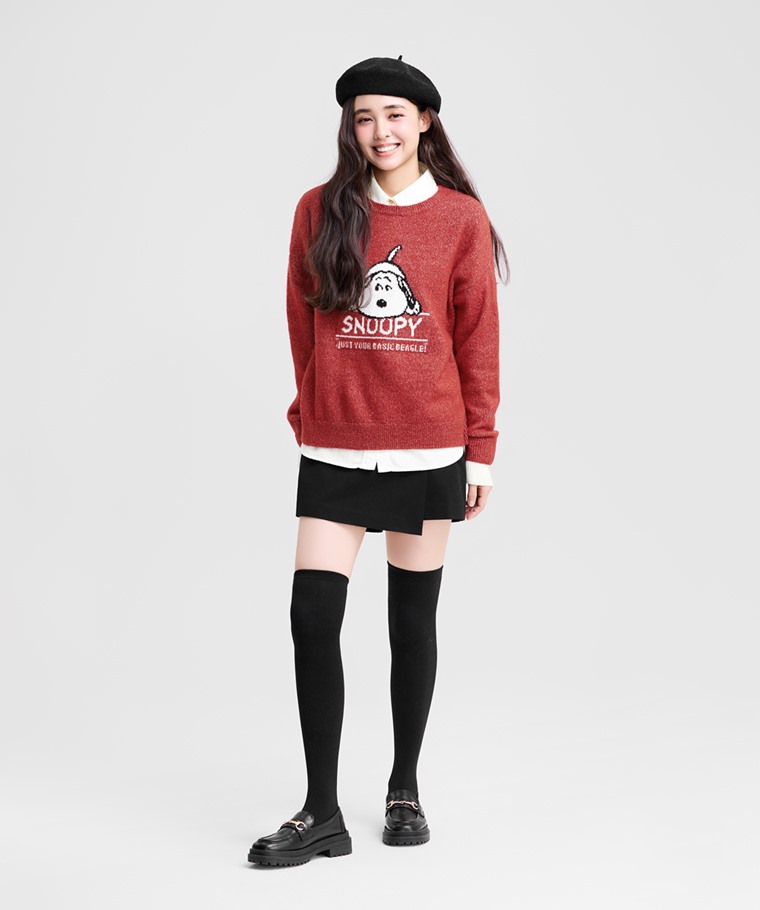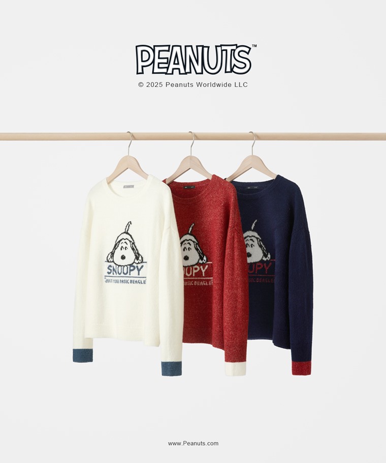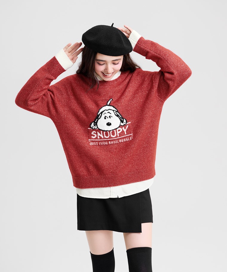 史努比系列粗針混紡毛衣-女(深藍-S)