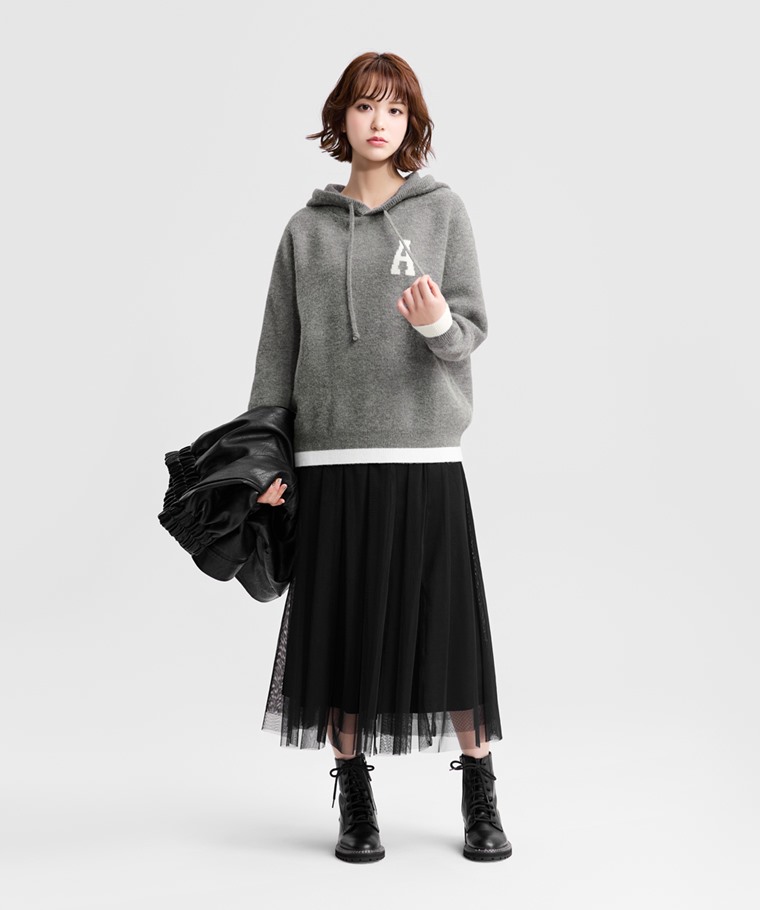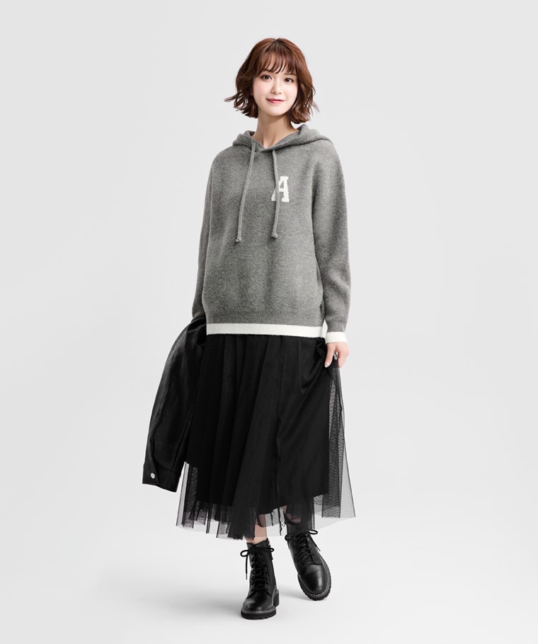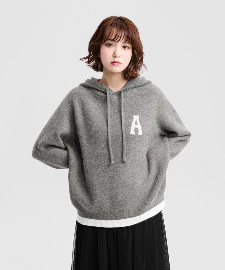 粗針混紡寬版連帽毛衣-女(麻花米-S)