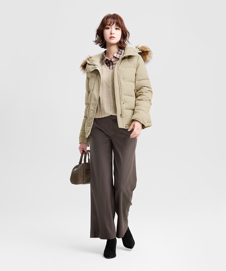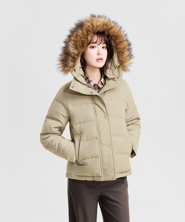 極暖羽絨帽毛連帽外套-女(黑色-XL)